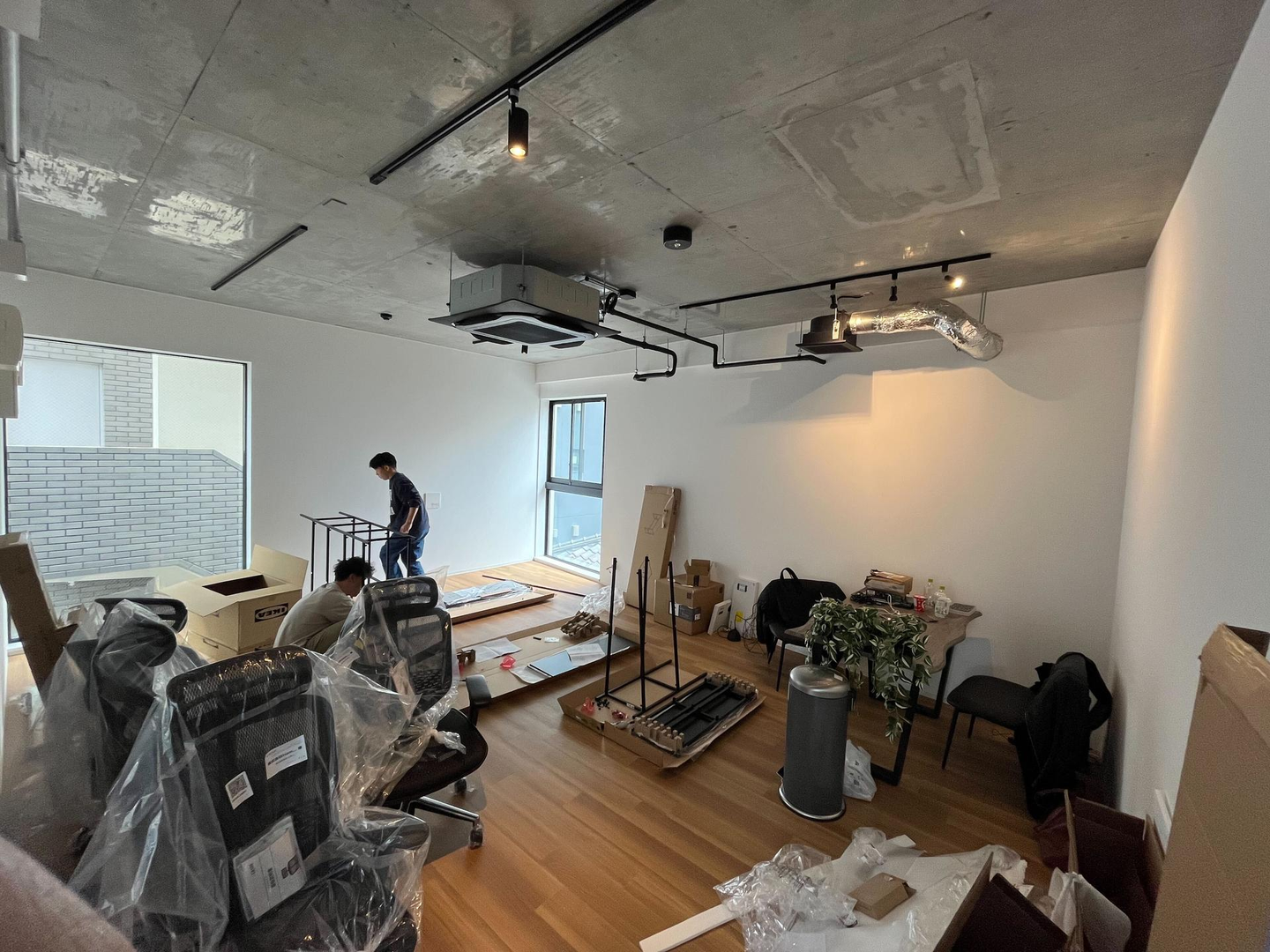 まだまだ狭い部屋へ机を運び込んで和気藹々としながらも