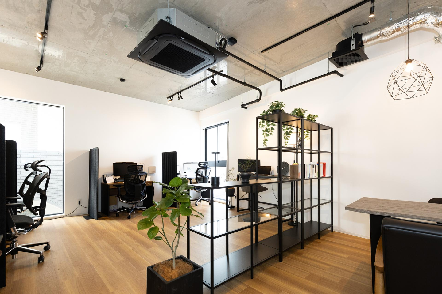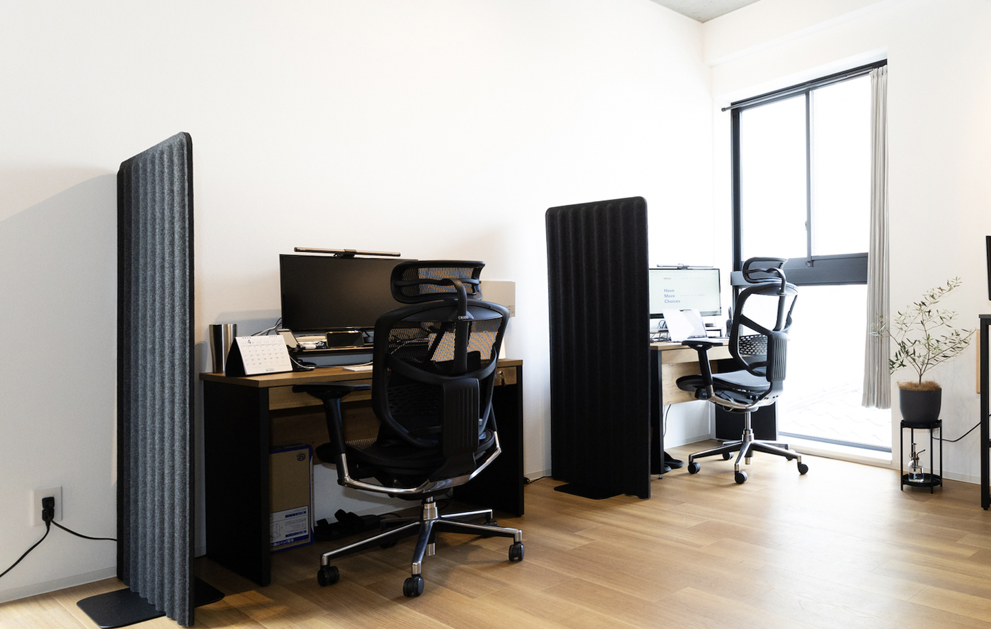 今までは各オフィスに備え付けの椅子や机がありましたが、今回はワンフロアということもあり