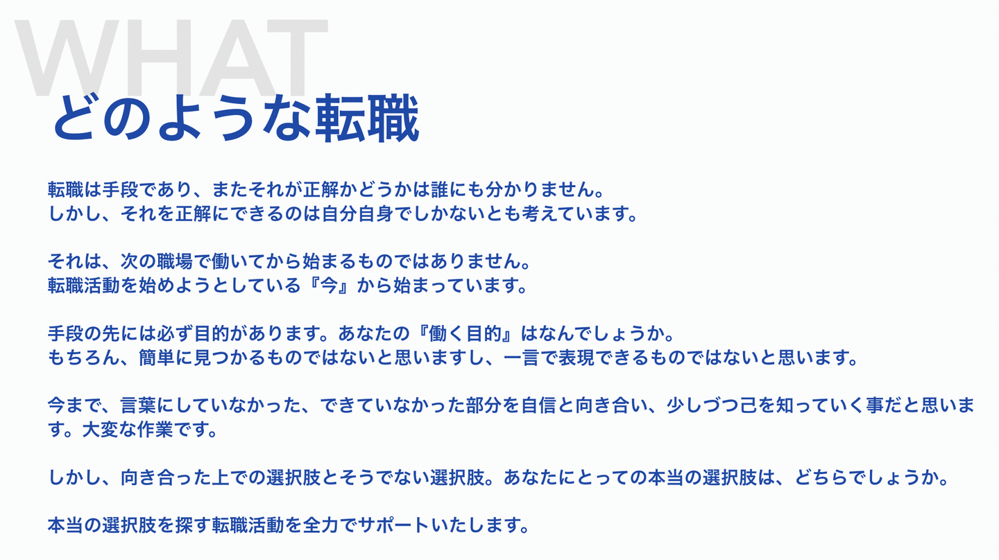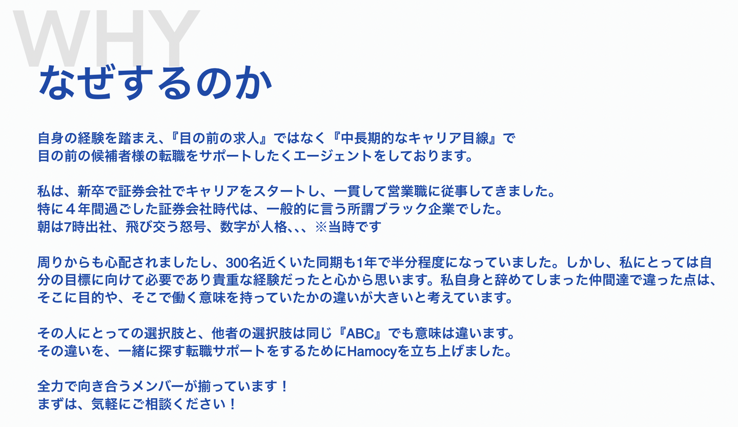Why :なぜ転職支援を行っているのか、どんなことを体現したいのか