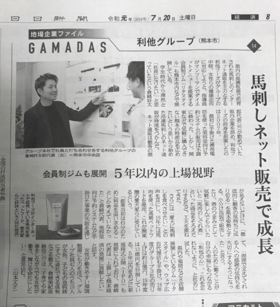 7月20日付の熊本日日新聞の朝刊にRITA GROUPの紹介を取り上げていただきました!