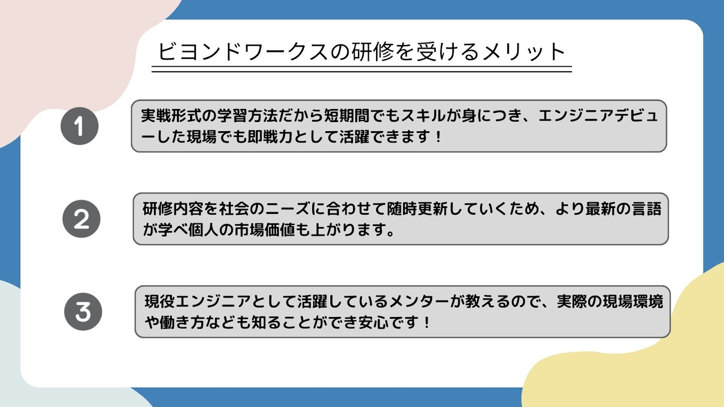 こんにちは、採用担当です。今月は株式会社ビヨンドワークスの研修について深掘りしていきます!これまで未経験からエンジニアを数多く育成・輩出してきたビヨンドワークスの研修を、こちらのストーリー記事をご覧になってくださった皆さんにこっそりお教えしちゃいます!