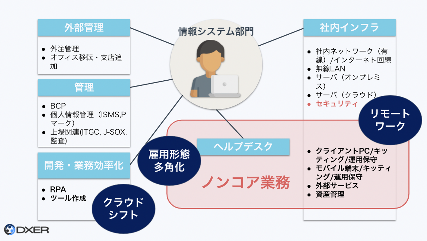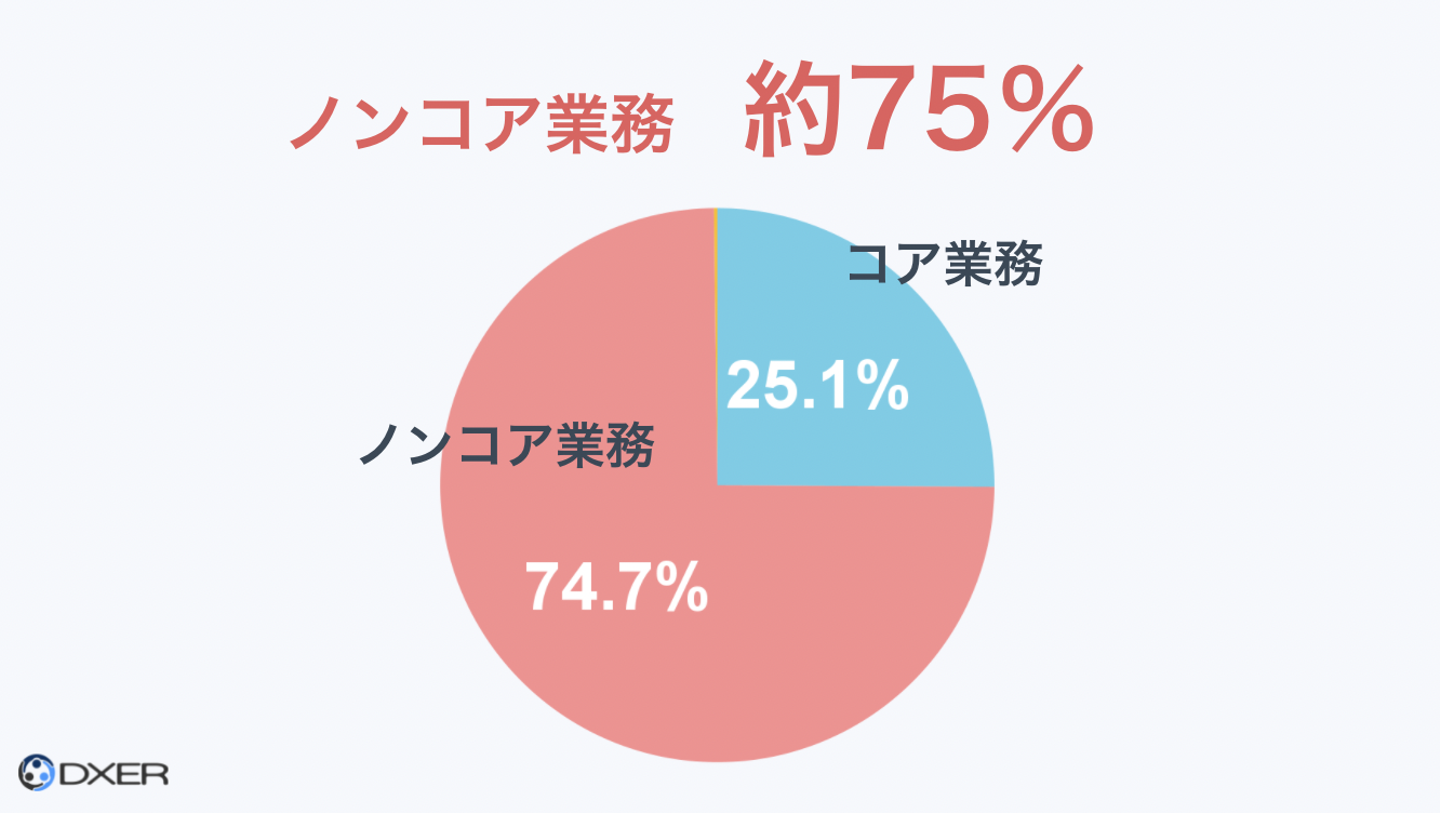 情シス業務の約75%が、主にビジネスを維持するための業務である「ノンコア業務」だと言われております。