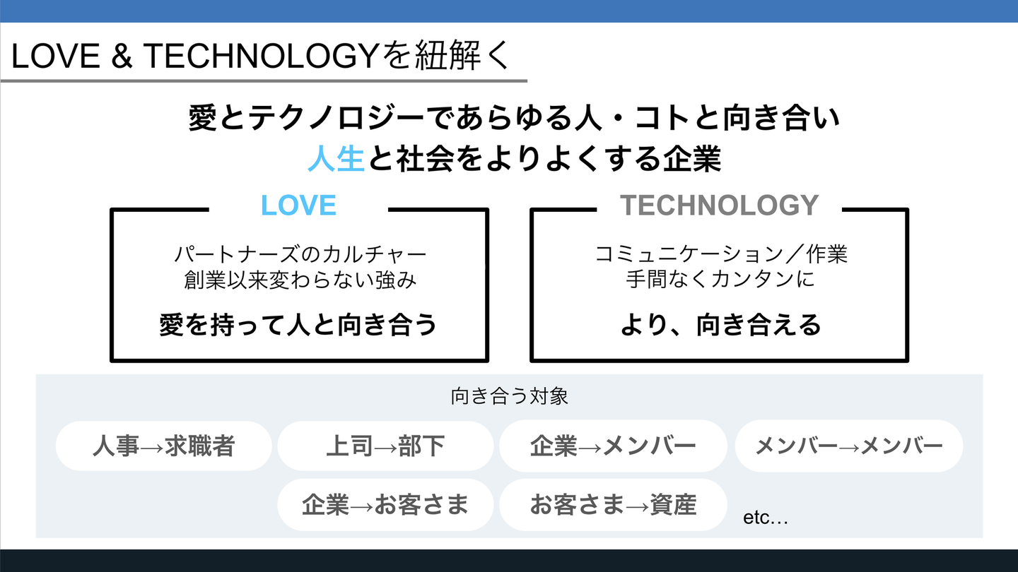 「LOVE&TECHNOLOGY」は人とテクノロジーの力を結集し、「私たちがお客さまへ」はもちろん、