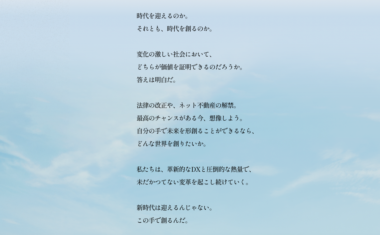 新時代の創り方は誰かが教えてくれるわけでもなければ、前例があるわけでもありません。方法は無数に存在し、起点は私たち社員だけでなく、新しい仲間となる皆さんにあります。
