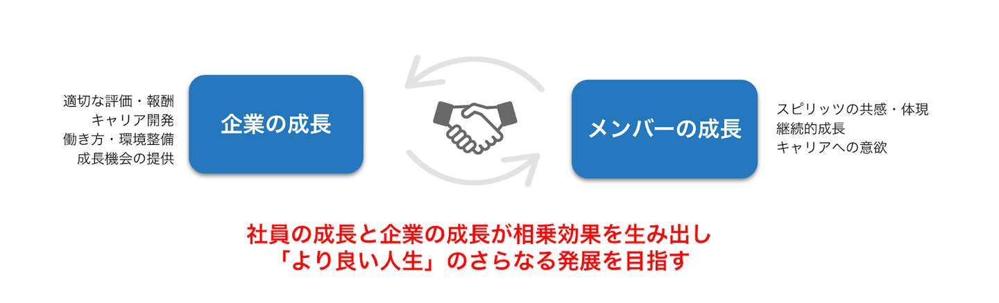 予測不能な変化の激しいVUCA※1の時代。どんな時代でも必要とされる人財であり続けるために、今以上に「常に成長し続ける」ことが求められています。パートナーズでは、社員が迷わずに課題に取り組み、成長できる環境を「働きがい」と定義しています。働きがいを追求し続けることで社員と企業の成長で相乗効果を生み出し、「より良い人生」に繋がると考えています。