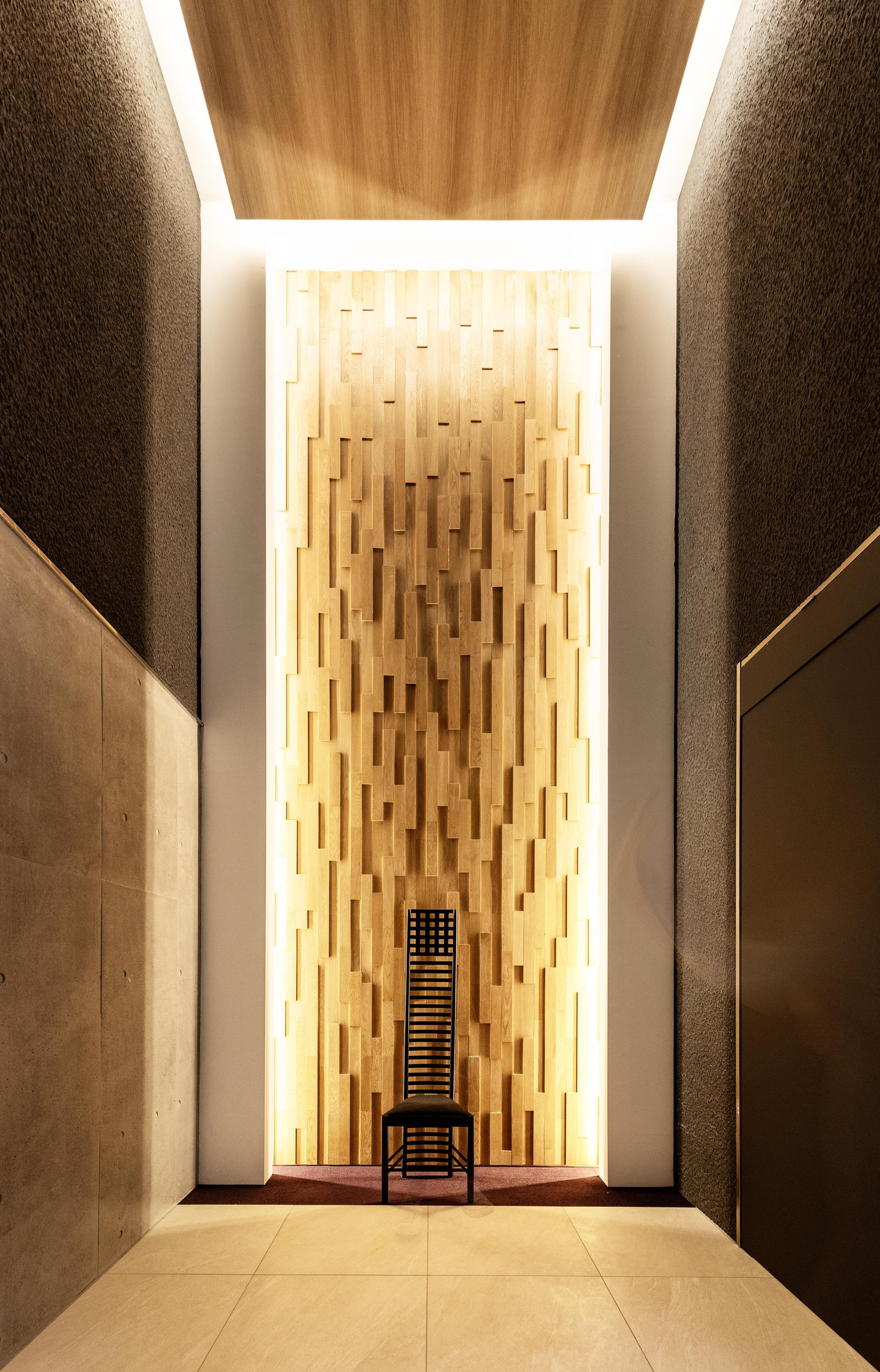 担当者のこだわりを持って作られた吹き抜けのエレベーターホール