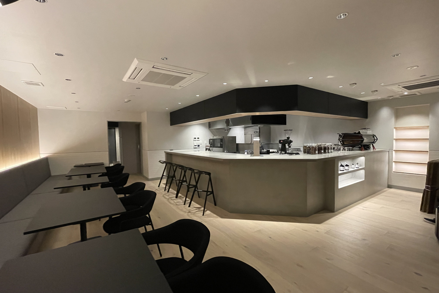 1Fカフェスペース 入居者用にパニーニやコーヒーなどの朝食が用意してある