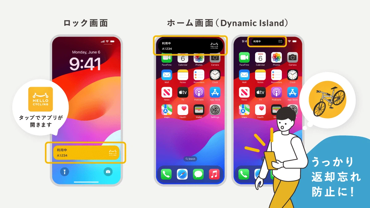 HELLO CYCLINGのnoteの記事にもあった「ライブアクティビティ」ですね。iOS特有の機能で、ライブアクティブティの開発は初めての経験でしたが、試行錯誤しながらなんとかリリースできました。色々な方の協力があったからこそできた機能なので自分としてはとても印象深くて、達成感がありました。この機能があれば自転車の返却忘れも減らせているのではないかと思います。