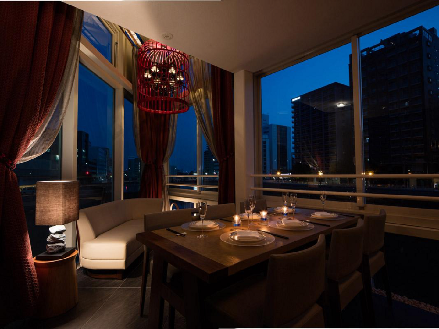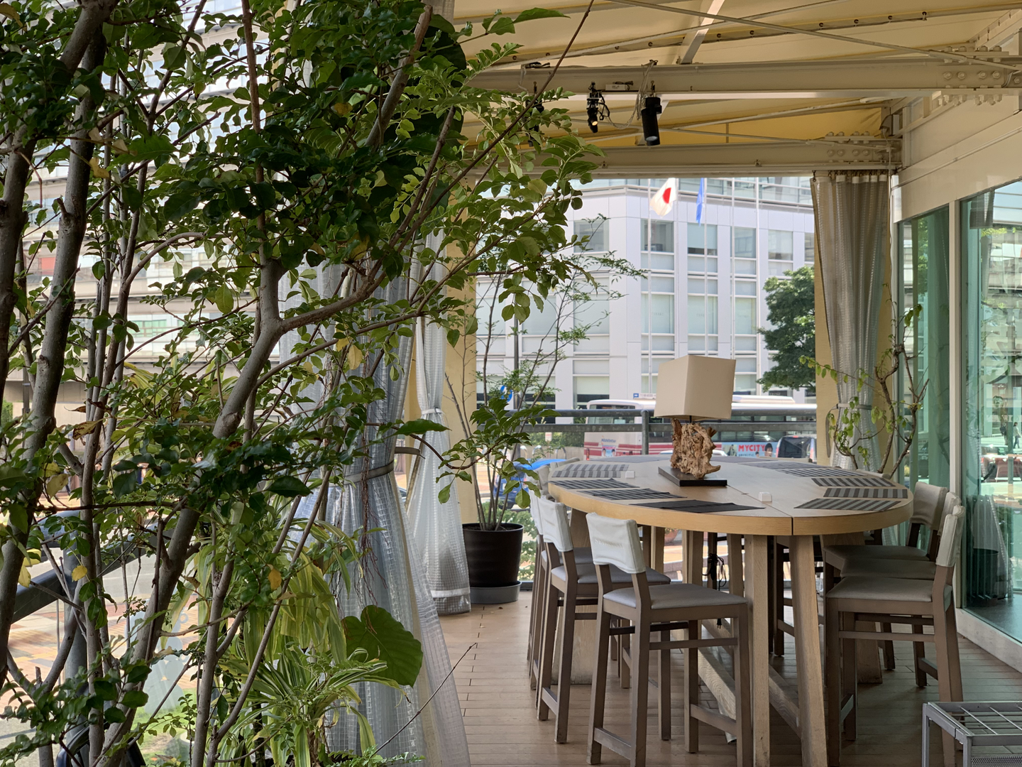 通されたのは広い大きな窓を配した店内、そこから奥へ進むと福岡の景色を一望できる窓辺の個室。まるで船に乗って食事をしているような気分になれる部屋でした。