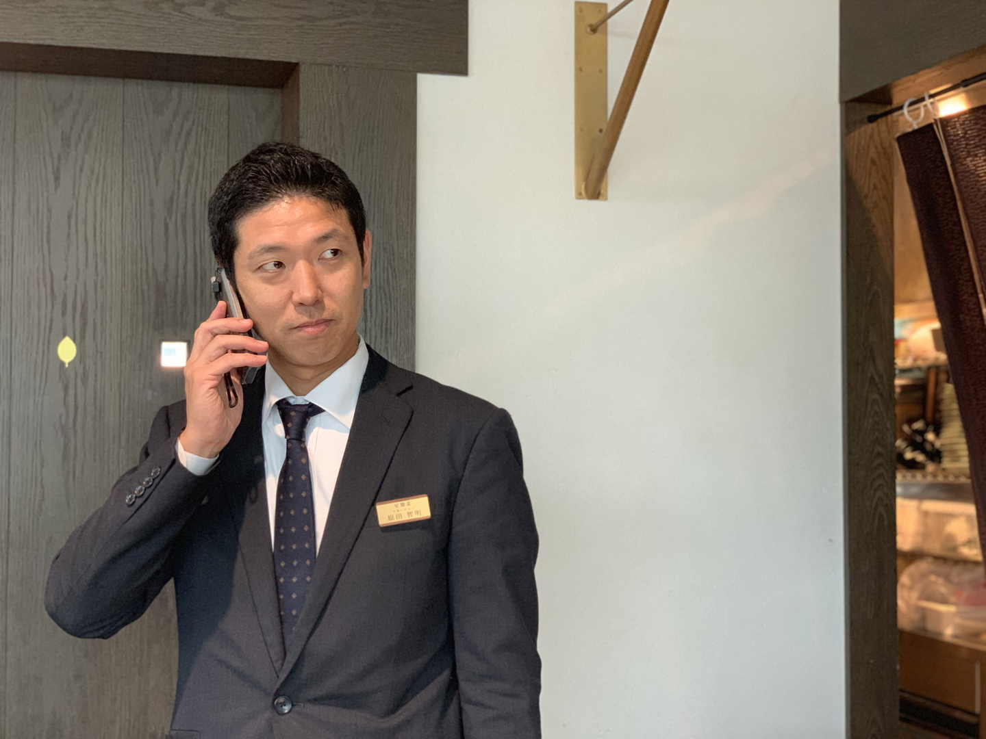 ↑マネージャーの原田さん 電話をかける抜群の演技で働いているシーンを撮影させてくれました。