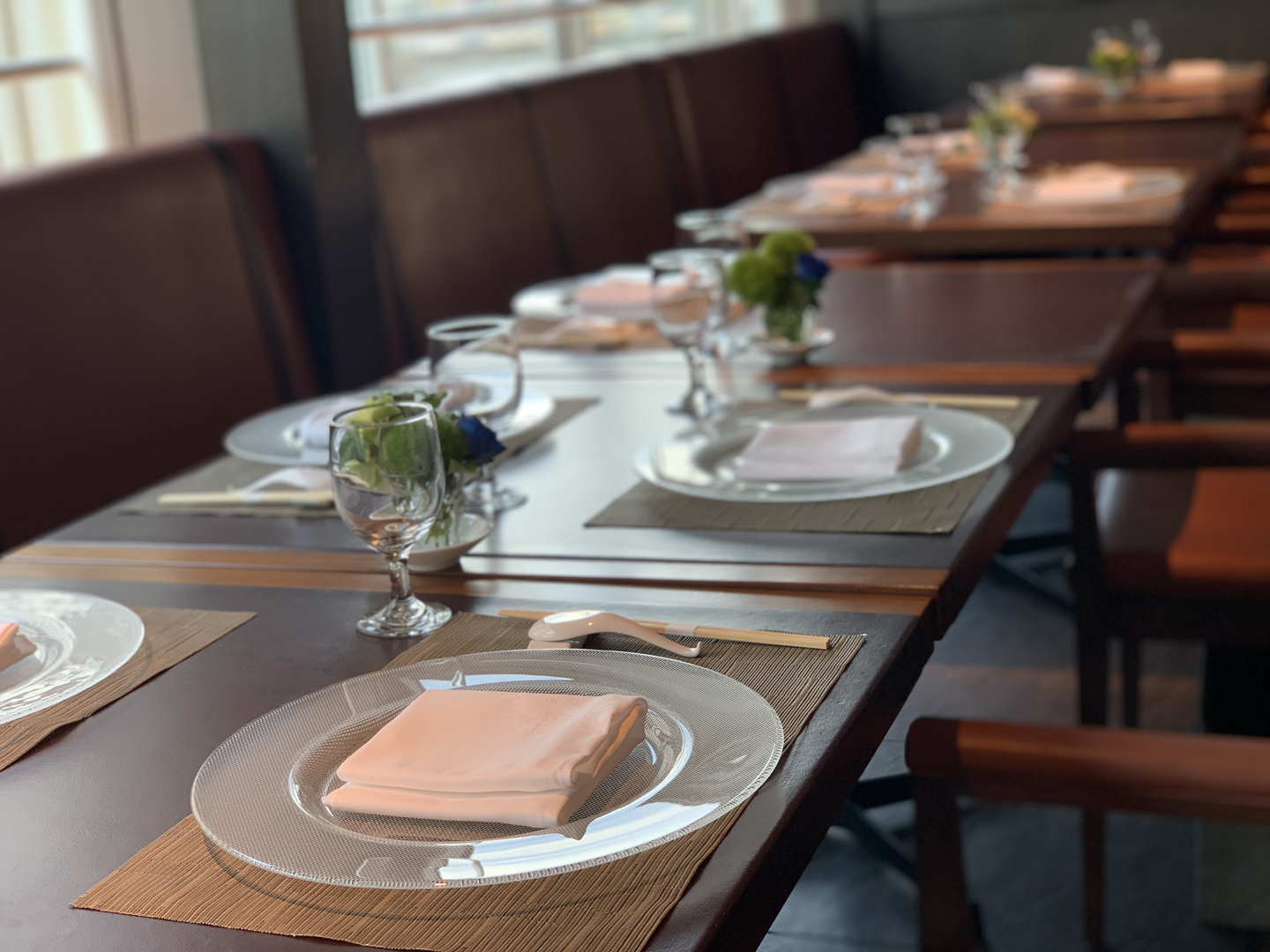 船をイメージした、広い大きな窓を配した店内で、カジュアルに食べられる麺料理と、個室で福岡の景色を楽しみながら、一品ずつ提供していく香港料理。