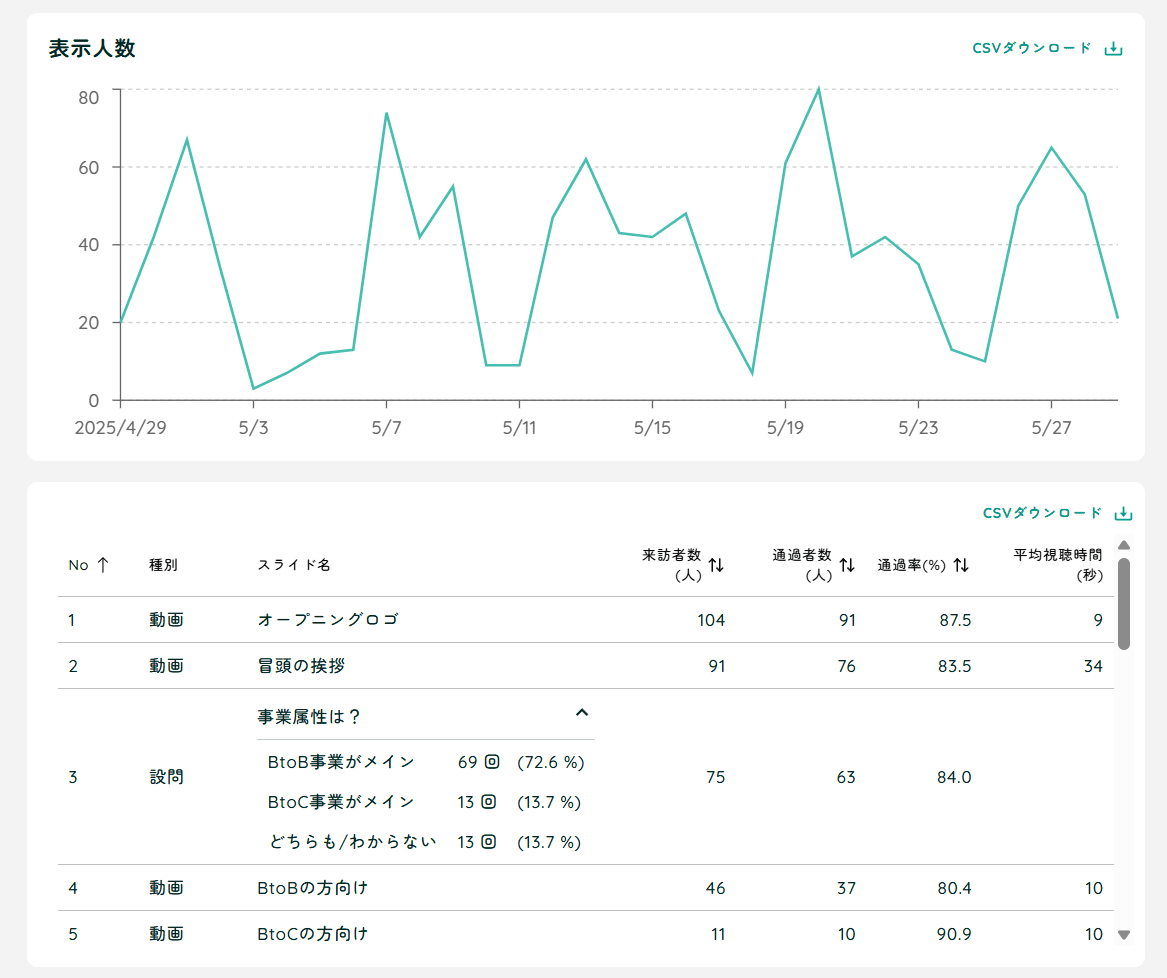 Video Agentの大きな特徴の一つは、従来の動画では得られなかった詳細な視聴データが取得できることです。コンサルチームは、これらのデータを分析し、当初設定した課題に対する効果を測定します。