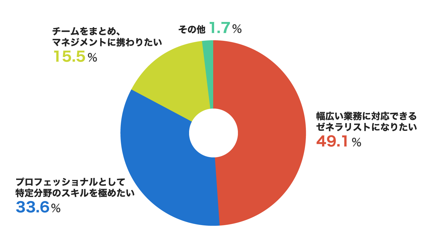 結果としては、約半数のメンバーが「幅広い業務に対応できるゼネラリストになりたい」を選択する結果となりました。