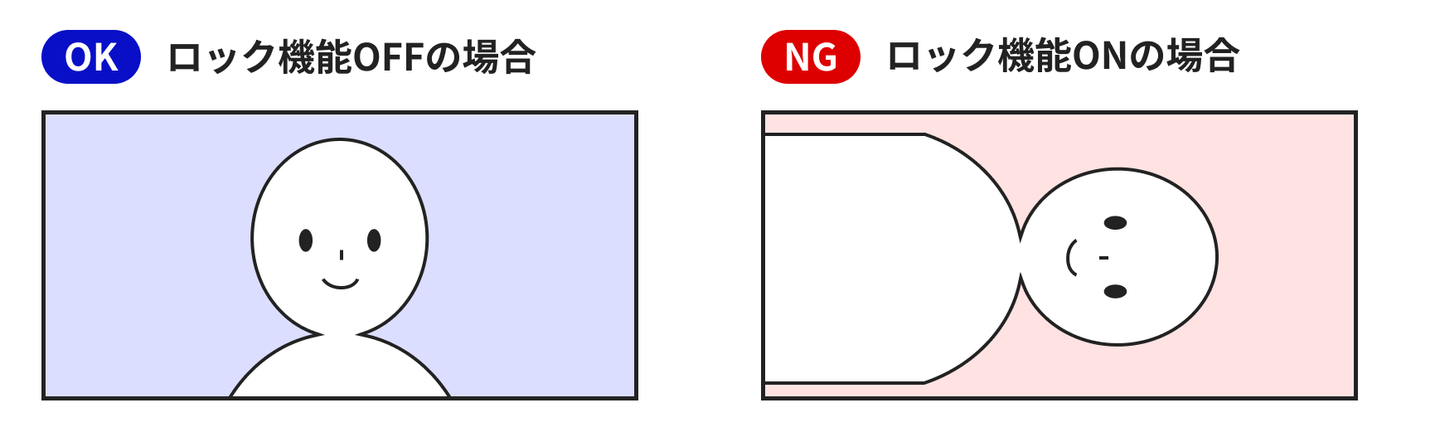スマホの向きを横にしたときも画面の向きが変わらないようにする機能ですが、このロック機能がONのままだと、スマホを横向きにしても画面自体は縦向きのまま映ってしまいます!スマホを横にして面接を受ける際は、縦向きロック機能はOFFにしていただけると問題なく映ります。