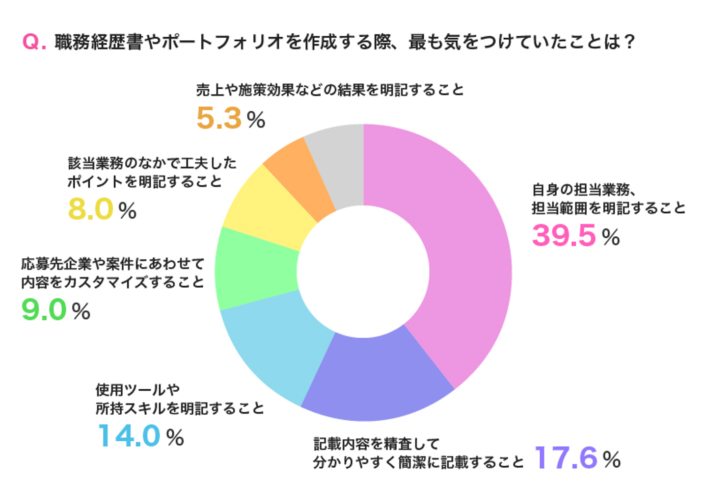 また、ポートフォリオについては掲載作品や企画に対してただ載せるだけではなく、そこに込めた意図をあわせて記載するという回答もありました。
