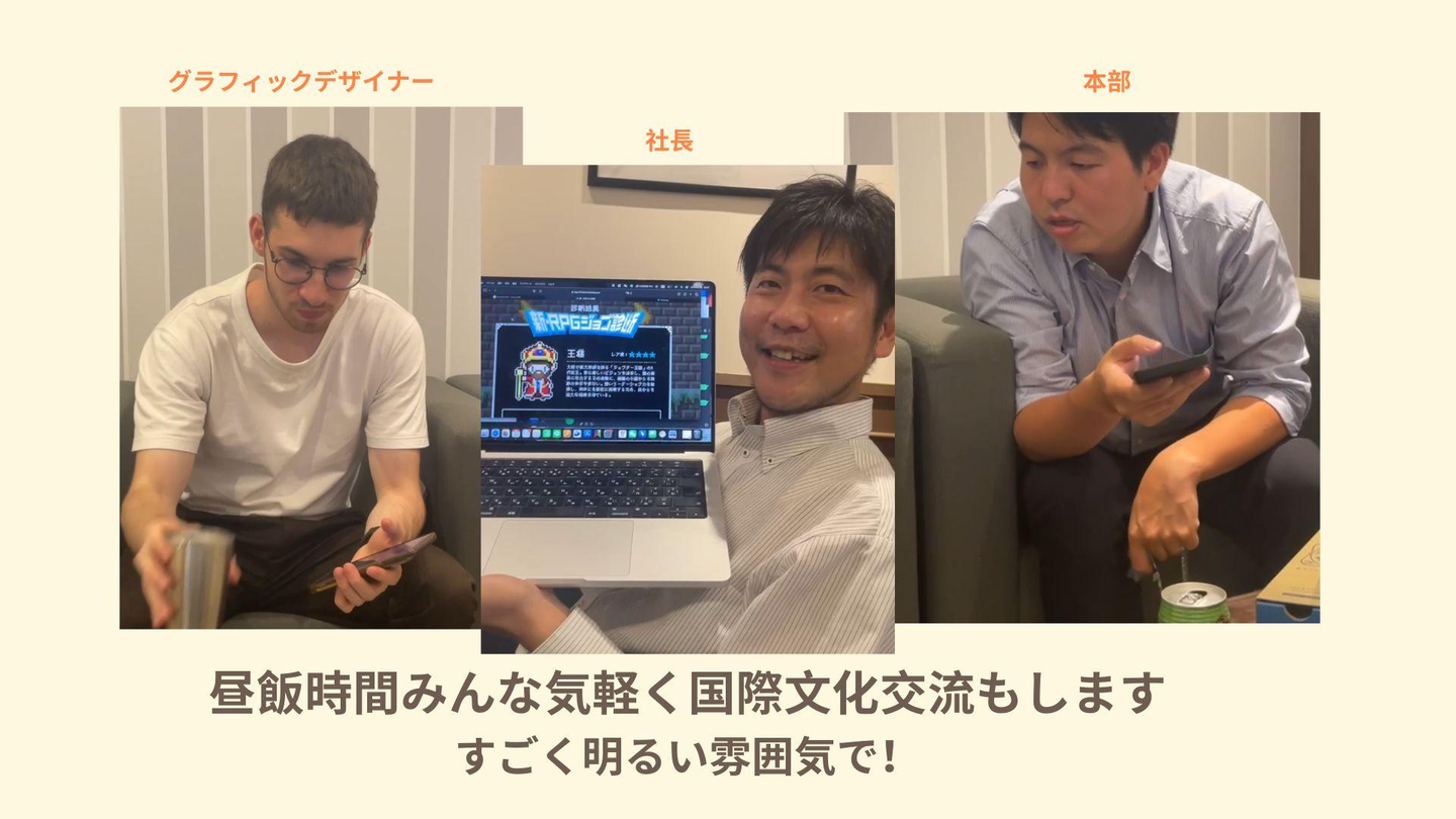A: やっぱ私服で通勤できることでめっちゃ良いと思います!自分はファションが好きなんで、自分の好きな服で通勤できるのは嬉しいです!お昼ご飯は、社長さんも社員さんも同じテーブルで一緒にご飯を食べます。外国籍の社員さんと食べながら軽く英語会話の勉強とか海外の食文化を学べるのですごく面白いです!あとは椅子がすごく気持ちいいです笑。