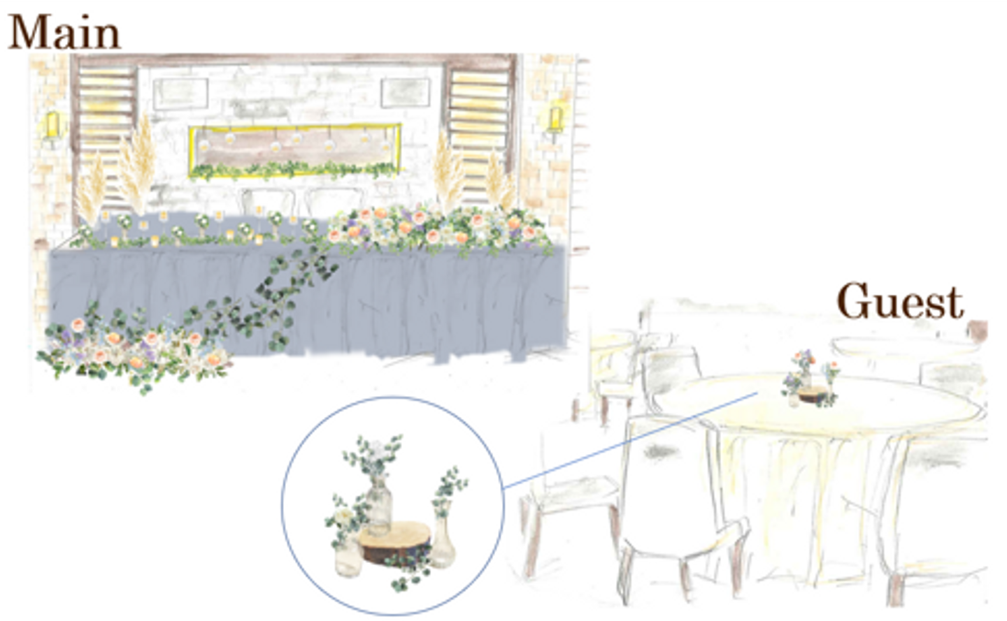 お二人の想いとフローリストのイメージが一致することで初めて相応しい空間装飾が生まれます。