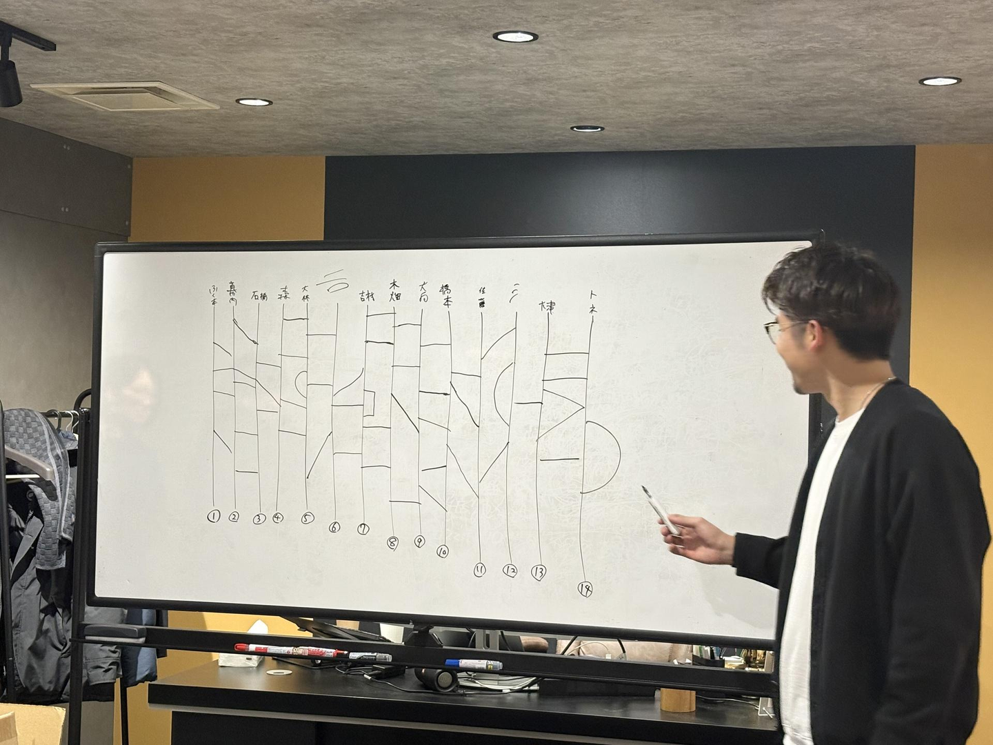 プレゼントの決め方はあみだです!1人ずつ線を追加していきました!