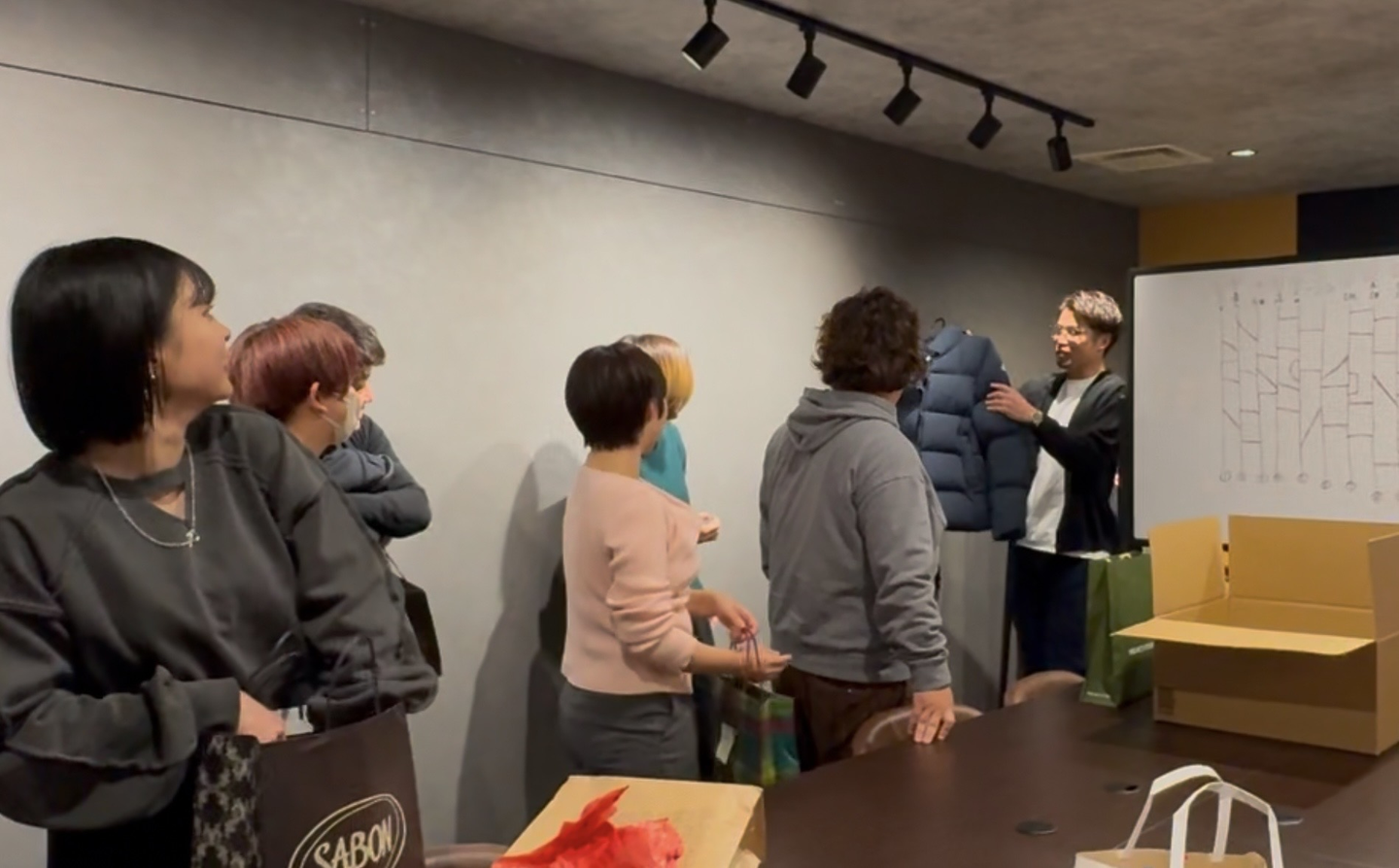 ▲みんなが気になっている社長からのプレゼントは森さんに!なんとダウンジャケットでした!