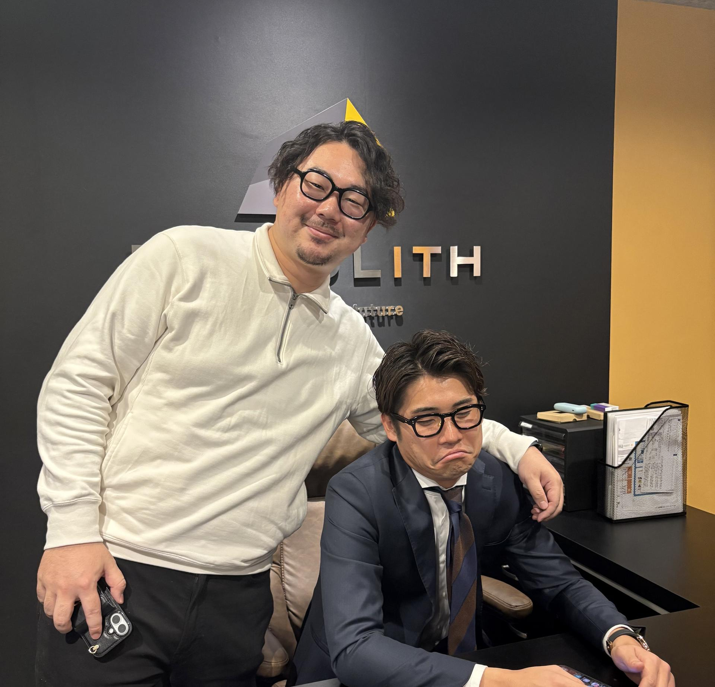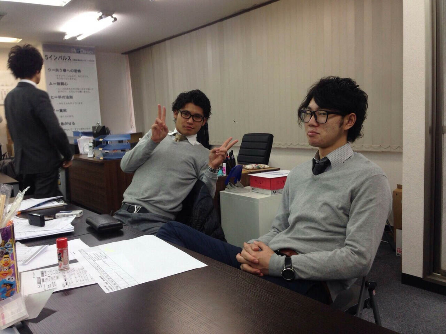 以前に社内研修の際、前職時代に二口さんが社長の営業の仕方から服装まで真似していた話を聞いていたので、この写真を見た時に本当にまったく同じでビックリです😲