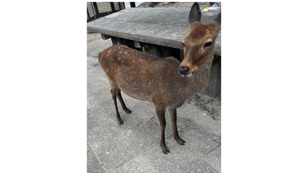 宮島に到着すると、鹿がお出迎えしてくれました!