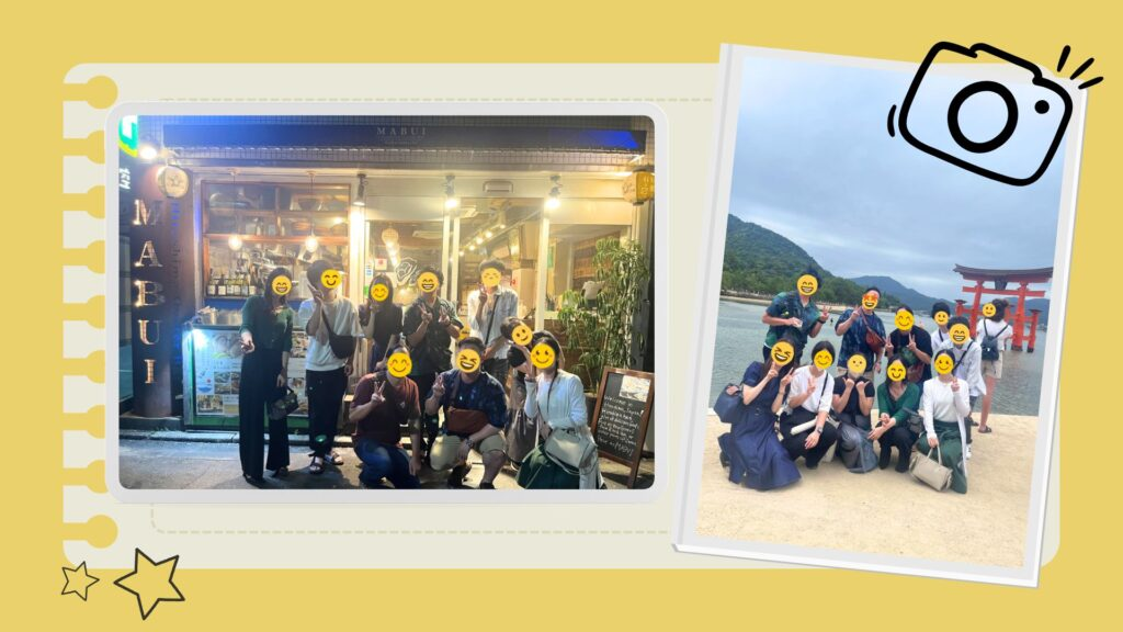 宮島では、世界遺産の厳島神社を参拝したり、全員でおみくじを引いたり、各々で食べ歩きを楽しんだりと、充実した時間を過ごしました✨