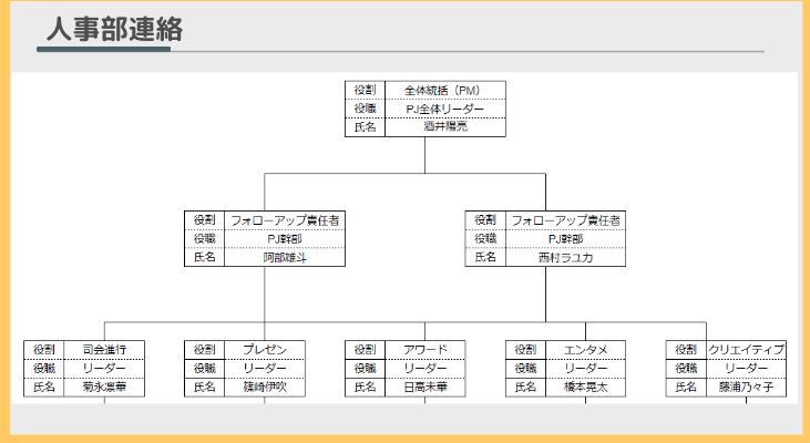 酒井:確かに。あと幹部の場合は特に、社長と表彰項目をすり合わせたり各事業部長に発表用スライドの作成をお願いしたり、普段直接やりとりすることがない経営層とのコミュニケーションを経験できたのは大きな違いかな。 みなさん忙しいので、少しでも依頼内容が伝わりやすい文章を考えたりして、すごくいい経験でした。