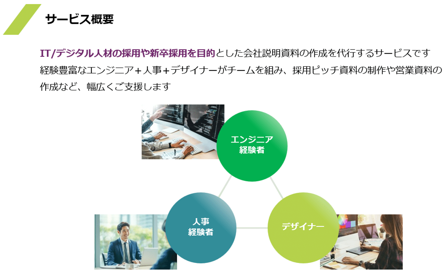 本記事では、エンジニア採用向けの資料作成代行サービスについて、実際の導入事例を交えながらご紹介します。