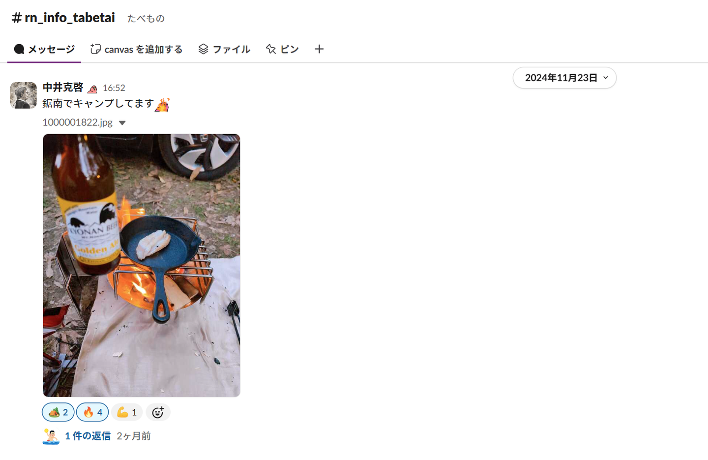 ※slackの一コマ。コメントの右のスタンプはParty Parrotが燃えています。
