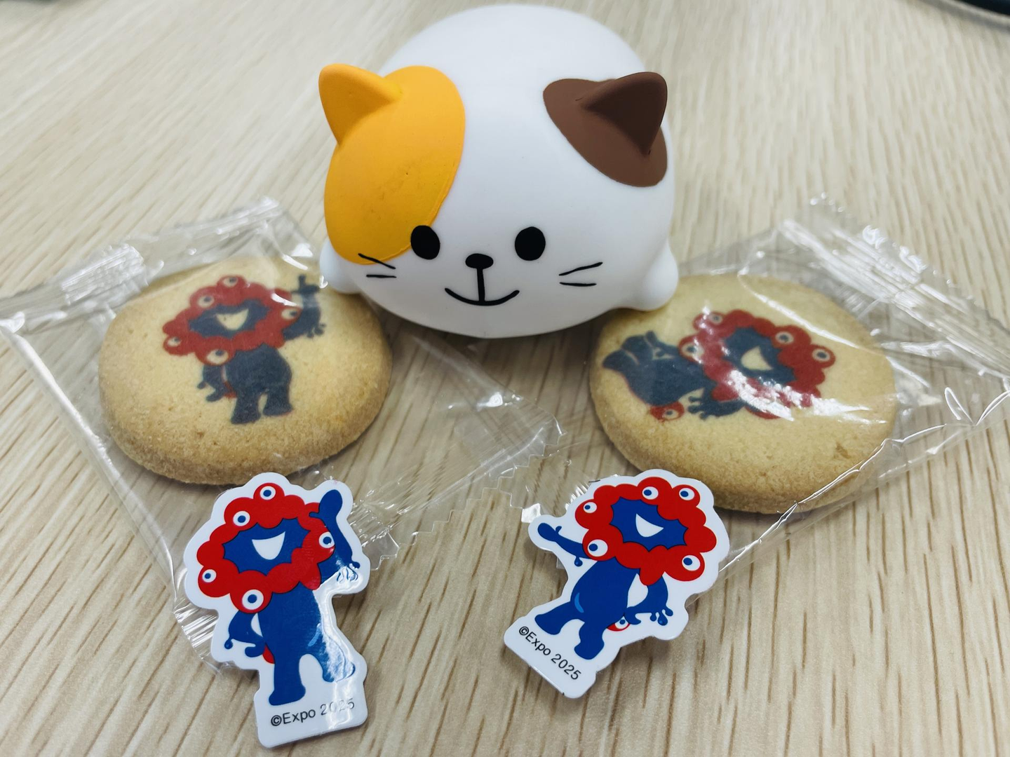 お土産のミャクミャクをおいしくいただきました。オフィスではお菓子片手に雑談をしていますよ☕️
