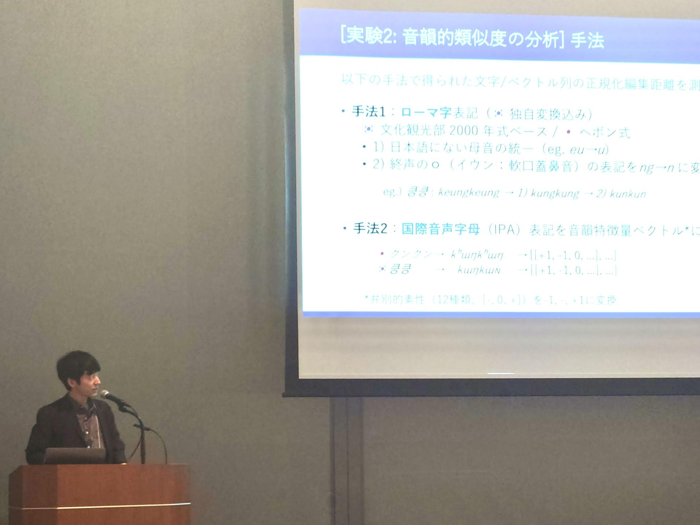 「言語の音と意味の関係について、オノマトペを通した分析による研究をしています。今回は、日本語と韓国語のオノマトペの関係ということをテーマに、言語間の一般性を見据えたような分析への第一歩を踏み出したいと思いました。まだ事例的な検証にとどまっていますが、今後は二言語間における音韻的な特徴をより大きく捉えられるような研究をさらに進めていけたらと思っています。」