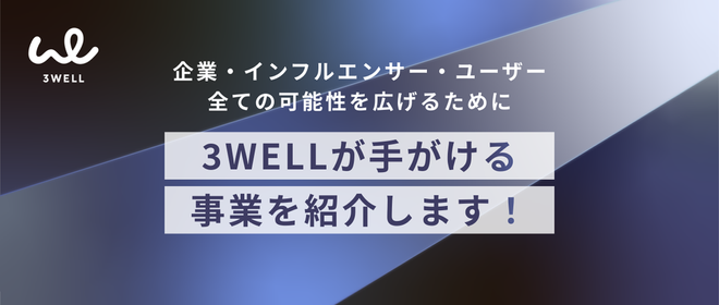 ▼3WELL公式チャンネル https://www.youtube.com/@3well826 2020年に創業した3WELLは「夢は社会を進化させる力である」という信念のもと、インフルエンサー・SNSマーケティングを軸に夢を追う個人や企業を支援しています。 創業事業であるインフルエンサーアフィリエイトプラットフォーム『THREEWith』を起点に、SNS広告運用、SNSメディア、ブランド支援など複数の事業領域に拡大。 世界規模で価値を創出する企業を目指し、海外展開にも積極的に取り組んでいます。