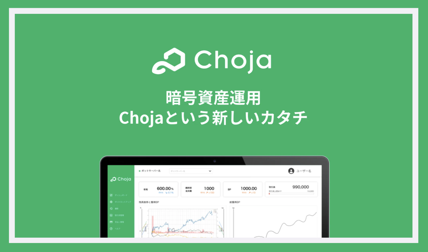 ざっくりと説明すると、Chojaは仮想通貨のリバランスを自動で行うbotです。取引所の仮想通貨をペアで運用していくんですが、一度設定すればあとはこちらで手を動かすことなくChoja botが自動で運用してくれるので、Chojaユーザーにとっては、長期的に安定的な運用ができるメリットがあります。