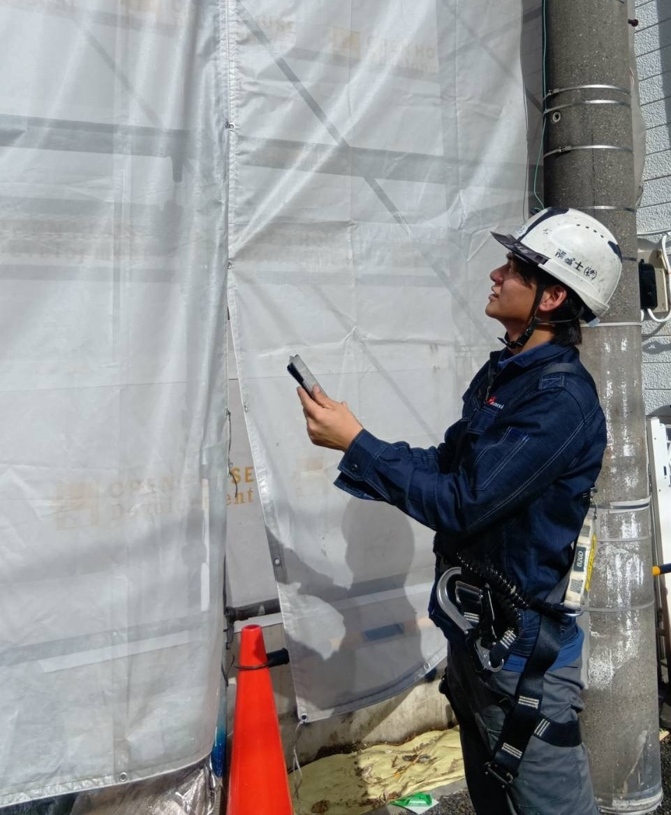 A2. 今は横浜統括営業所で新築住宅の屋根施工を管理しています。仕事内容は多岐にわたりますが、主には工程・資材・職人の管理、そしてお客様や協力会社との打ち合わせです。