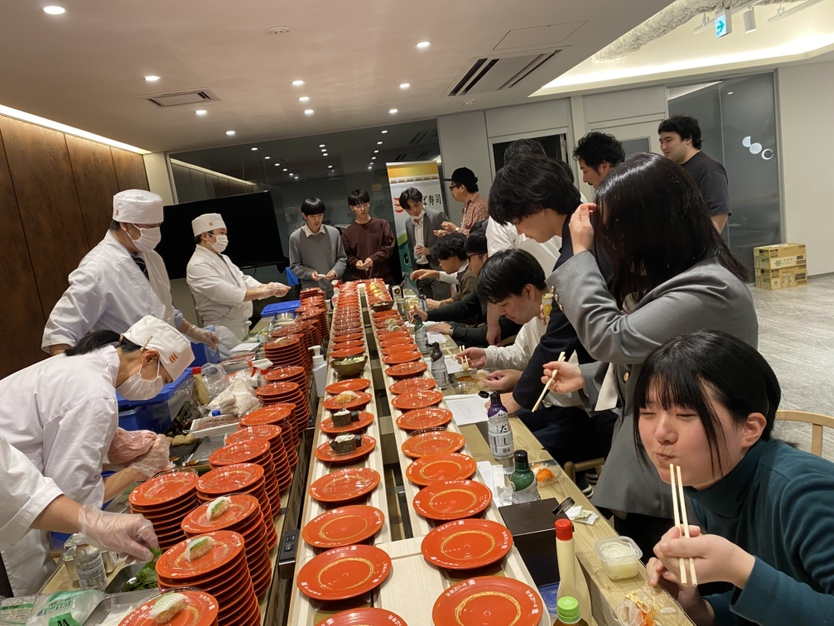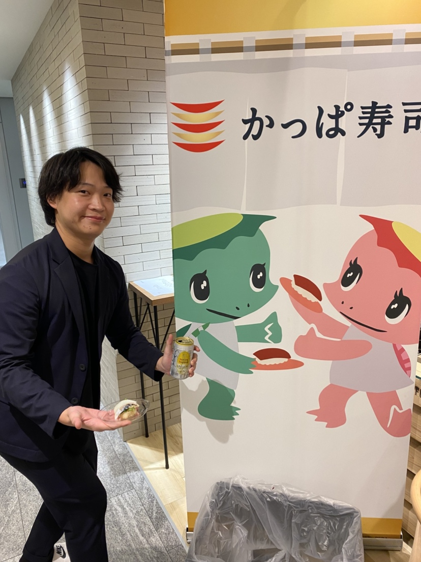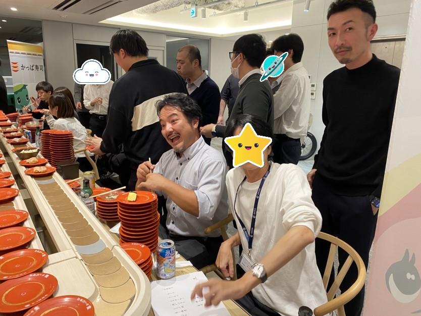 今回は、帰社するメンバーのためにかっぱ寿司さんに出張サービスを依頼!