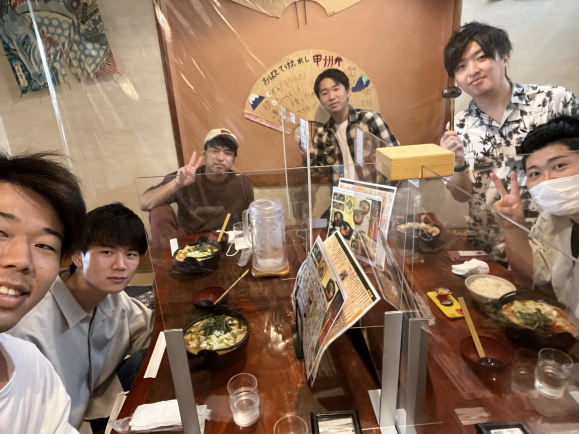こちらは男性メンバー6人で山梨までほうとうを食べに行ったときの写真です。