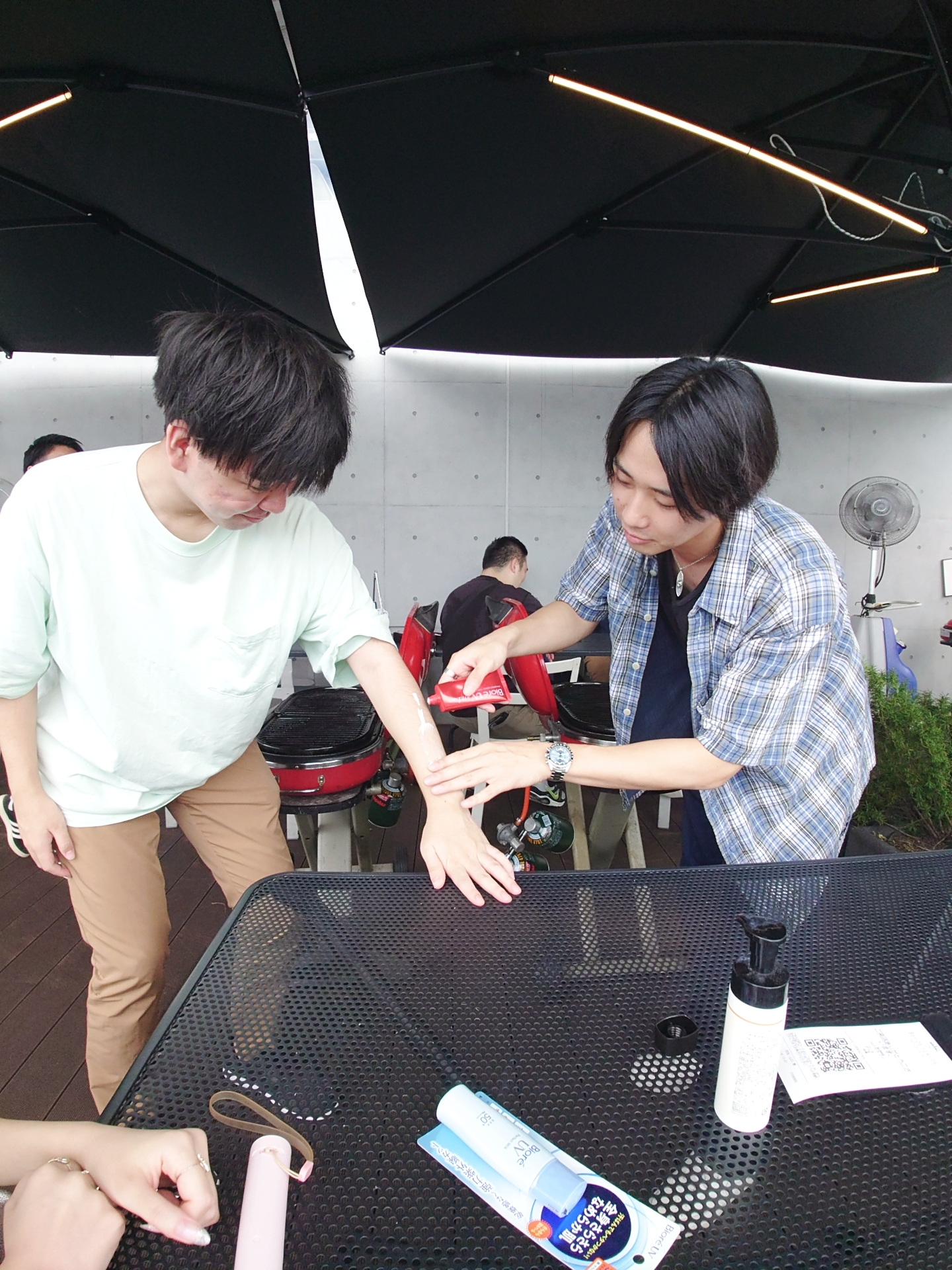 美意識高め男子の中原課長(写真右)と、課長に日焼け止めを塗ってもらう皆川くん
