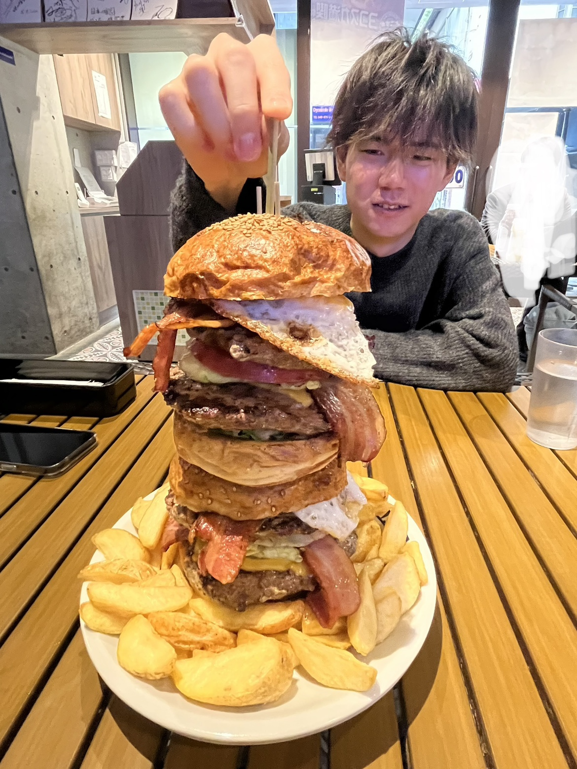 このサイズのハンバーガー、男子3人でなんとか完食したそうですよ~