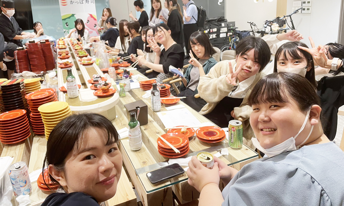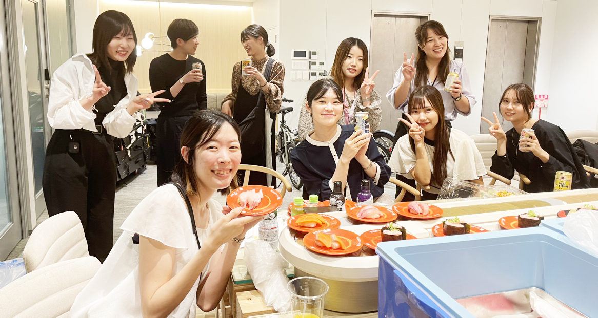 皆、お寿司に夢中で、営業部の佐々木さんのみこちらにポーズしてくれましたwww