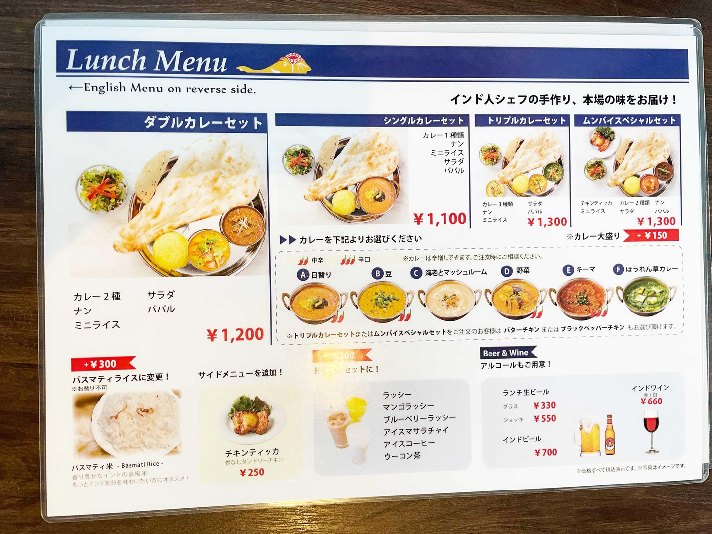 ランチの時間帯は、100円+するとカレーの味を追加できます。
