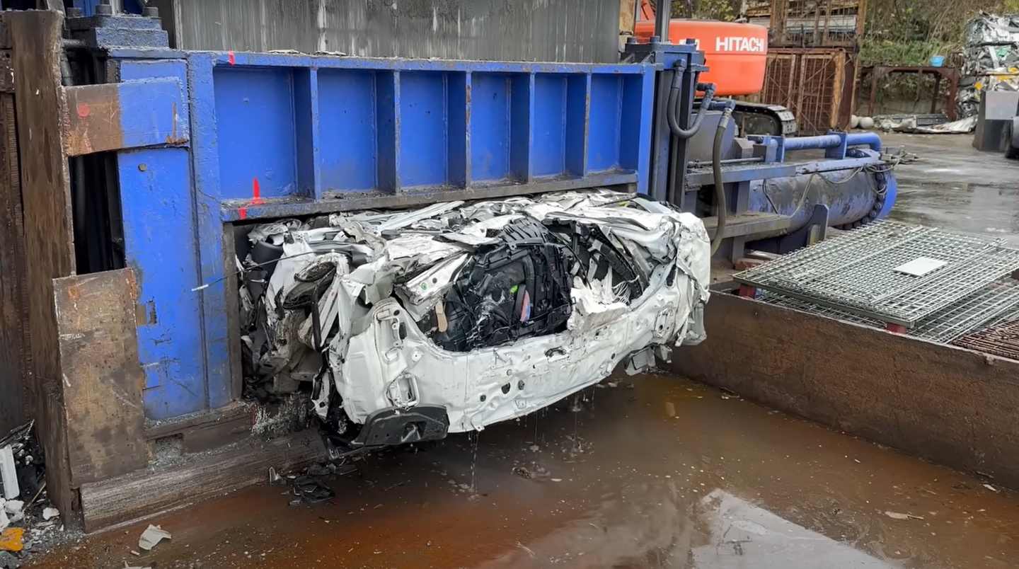 このプレスされた四角い塊は、このあと「シュレッダー工場」に旅立ちます。
