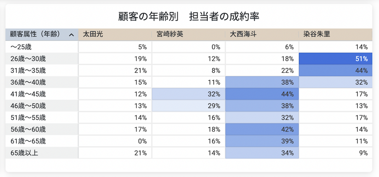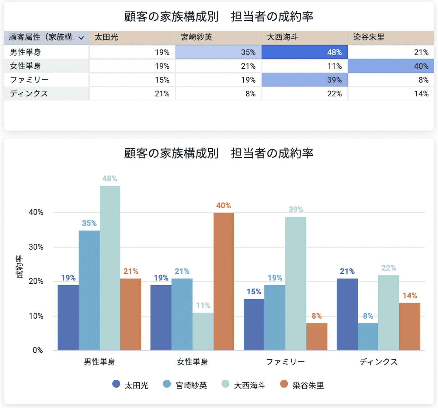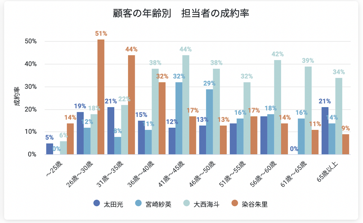 指標2:営業ごとの顧客属性別の成約率を可視化し得意な属性にのみ対応することで全体の契約率を大幅改善