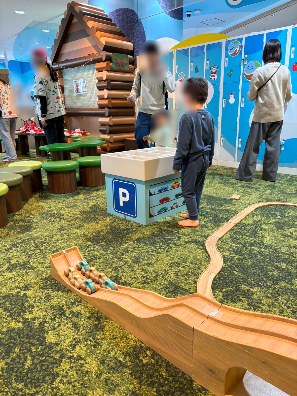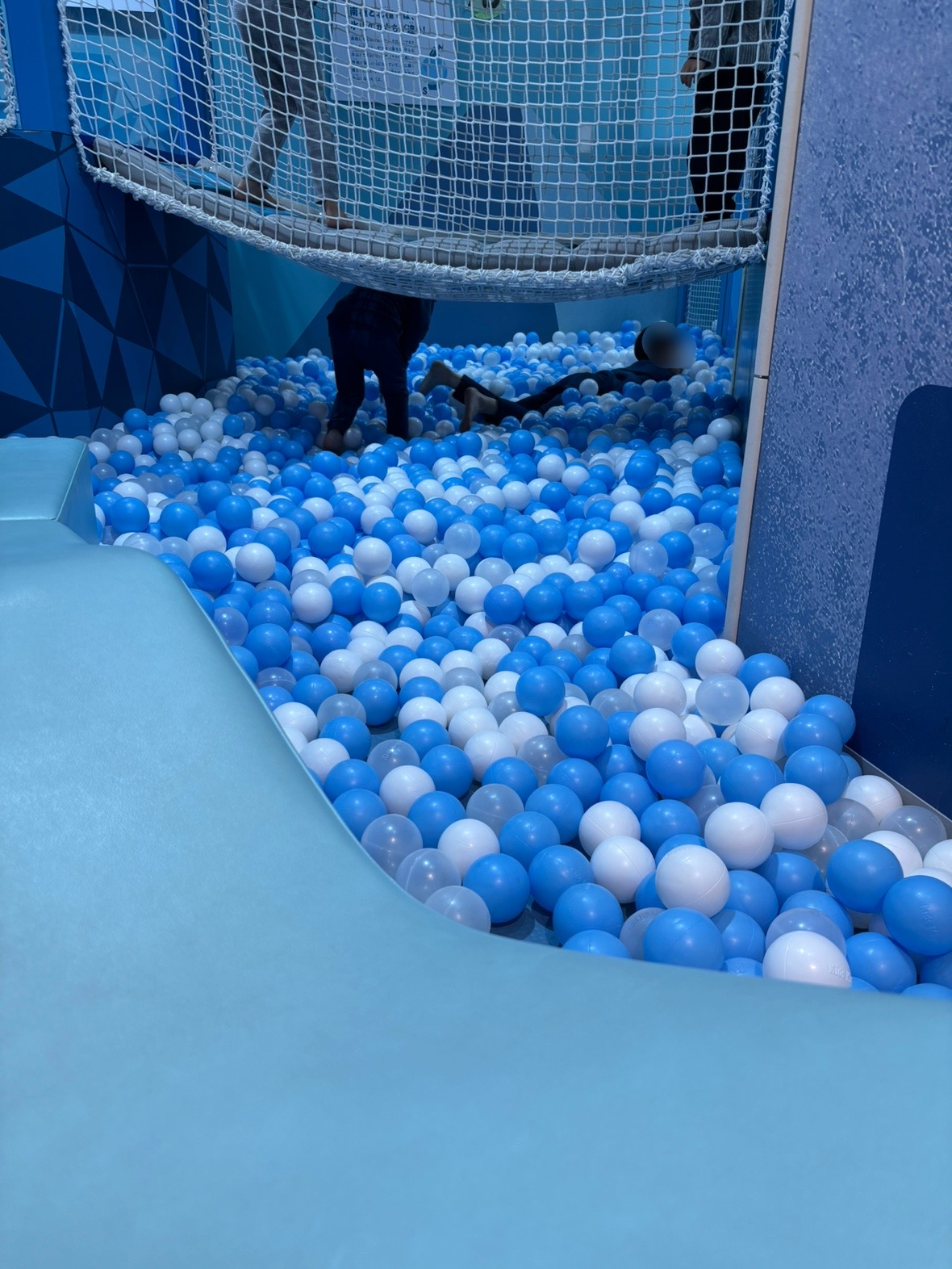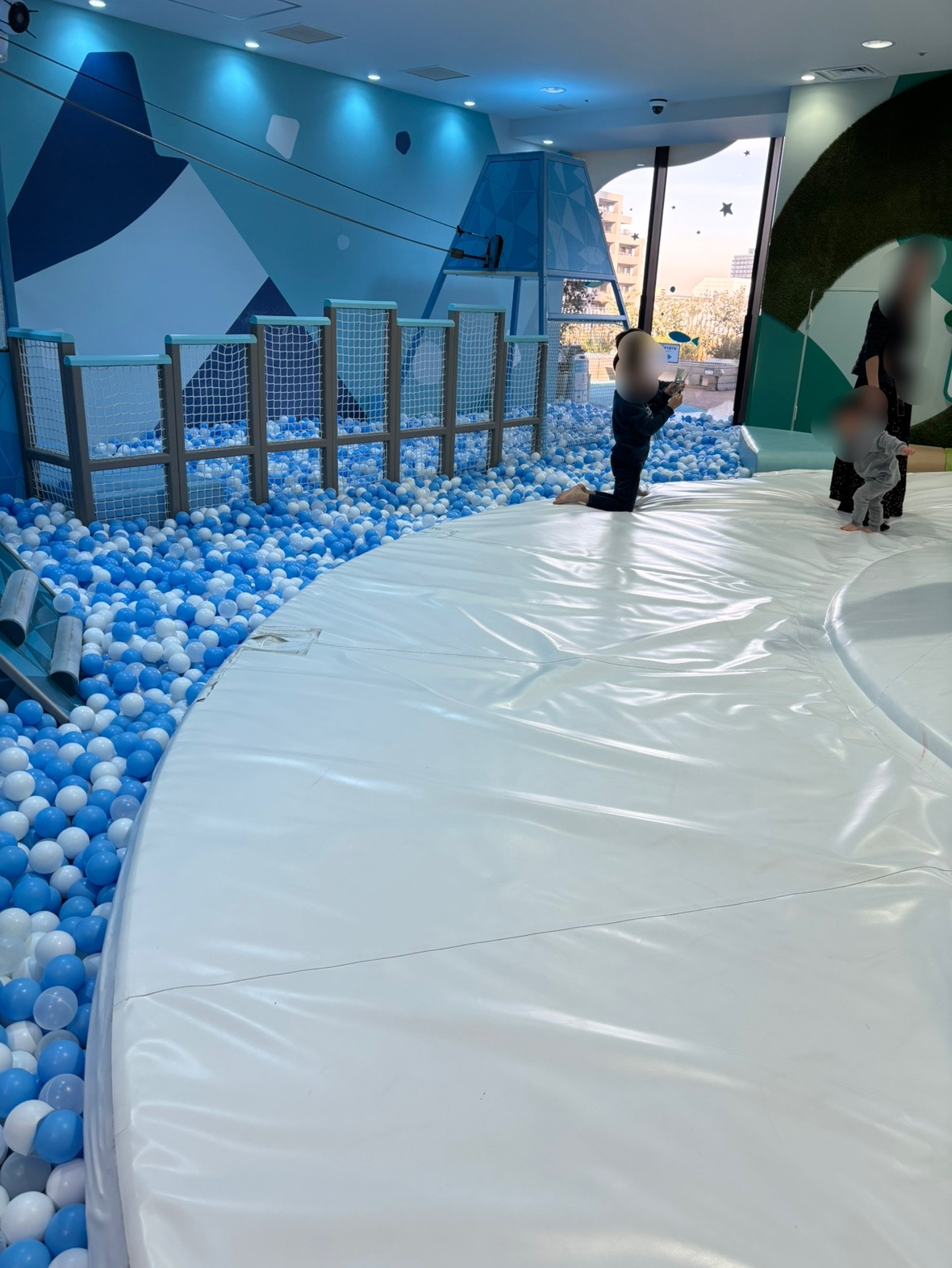 レールのおもちゃの他に、氷山に見立てた大きなトランポリンやボールプールなど多くの遊具がありました!