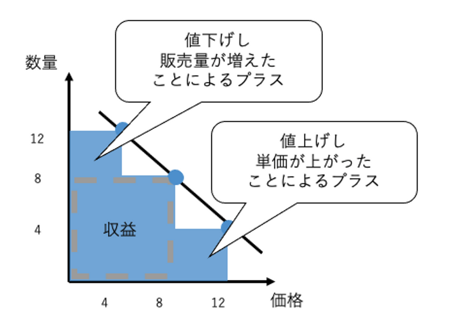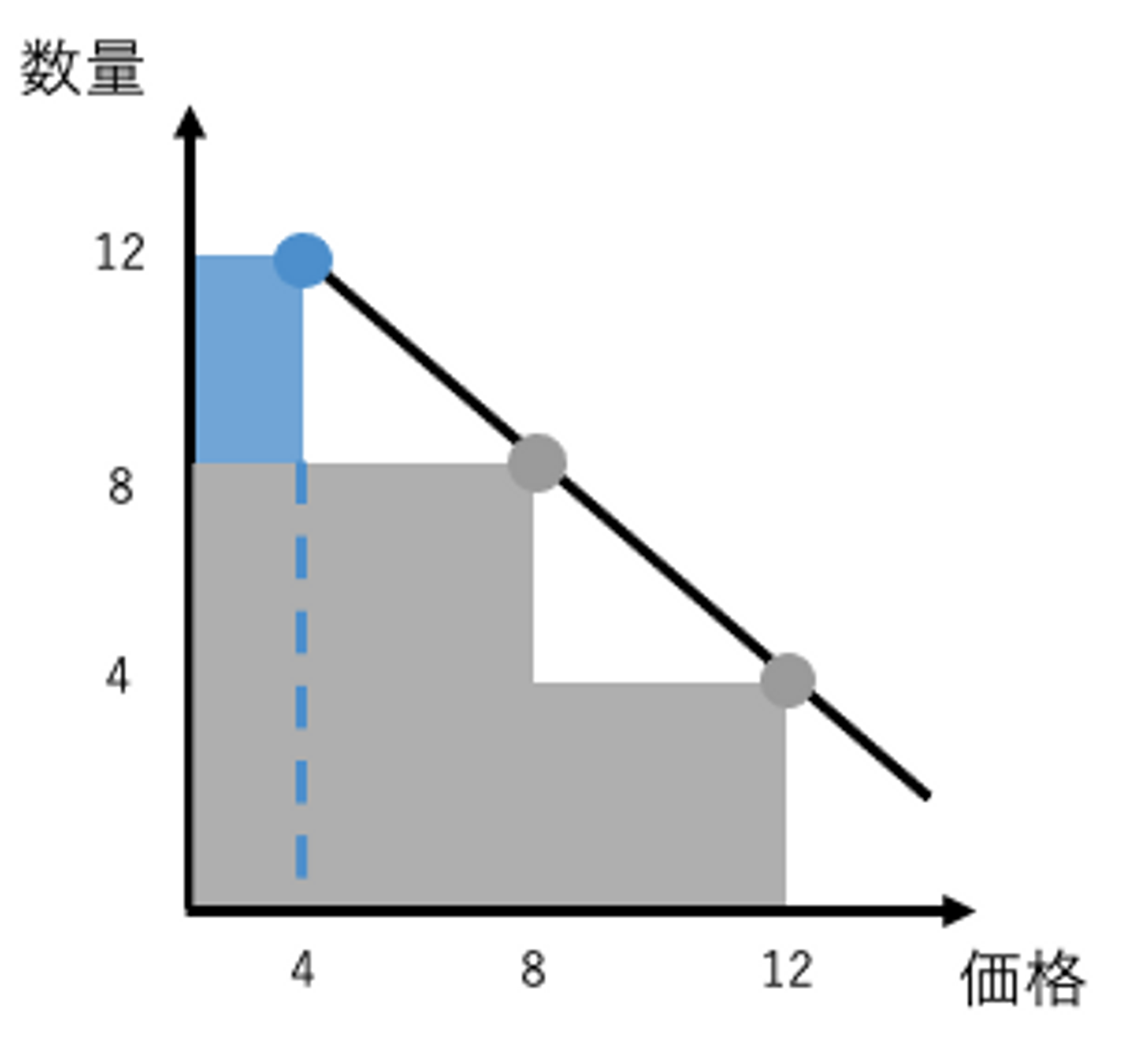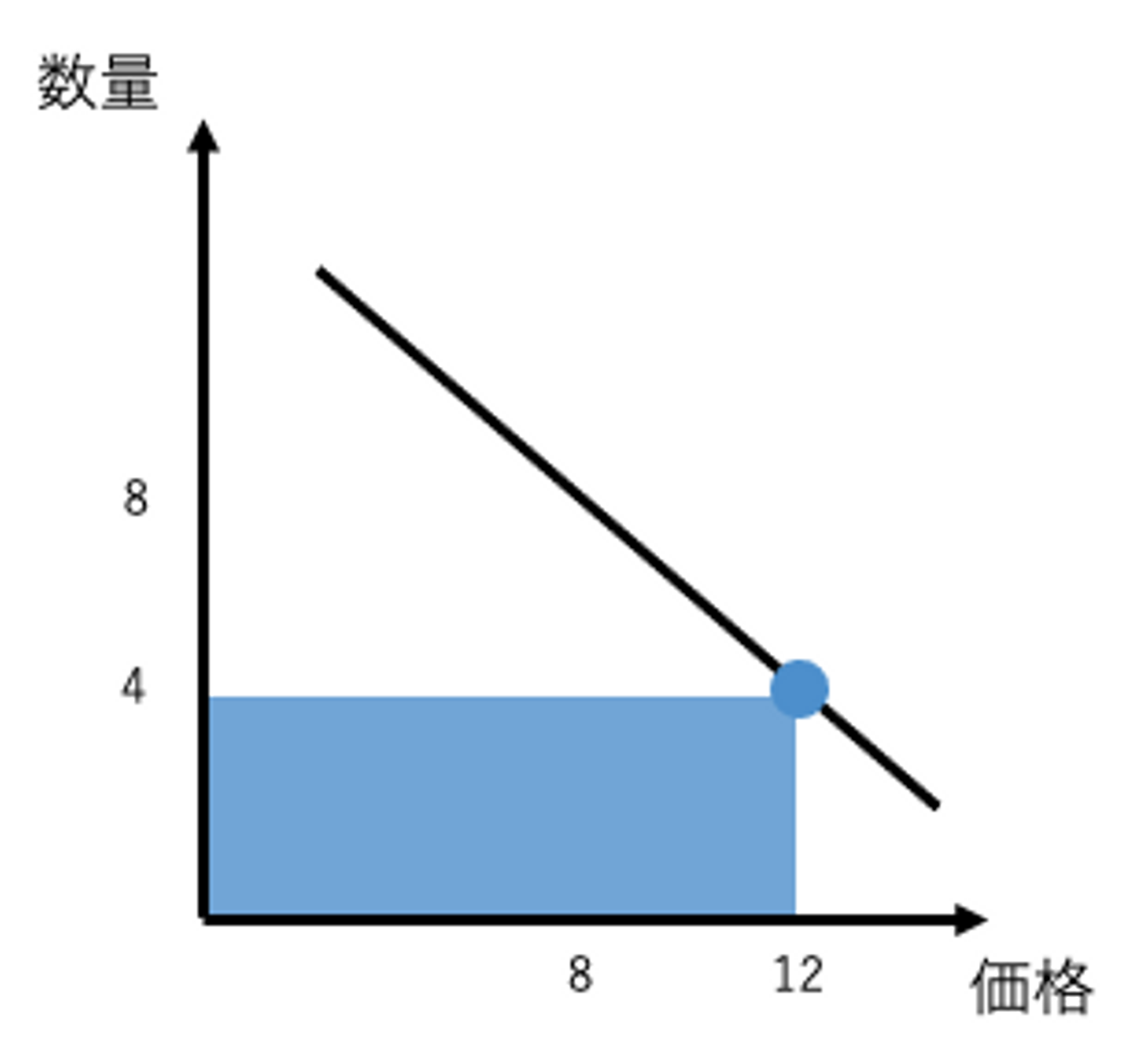 これは、これまで価格「8」で売っていた販売量(8)のうち(4)が、価格「12」で売れたことを意味しています。