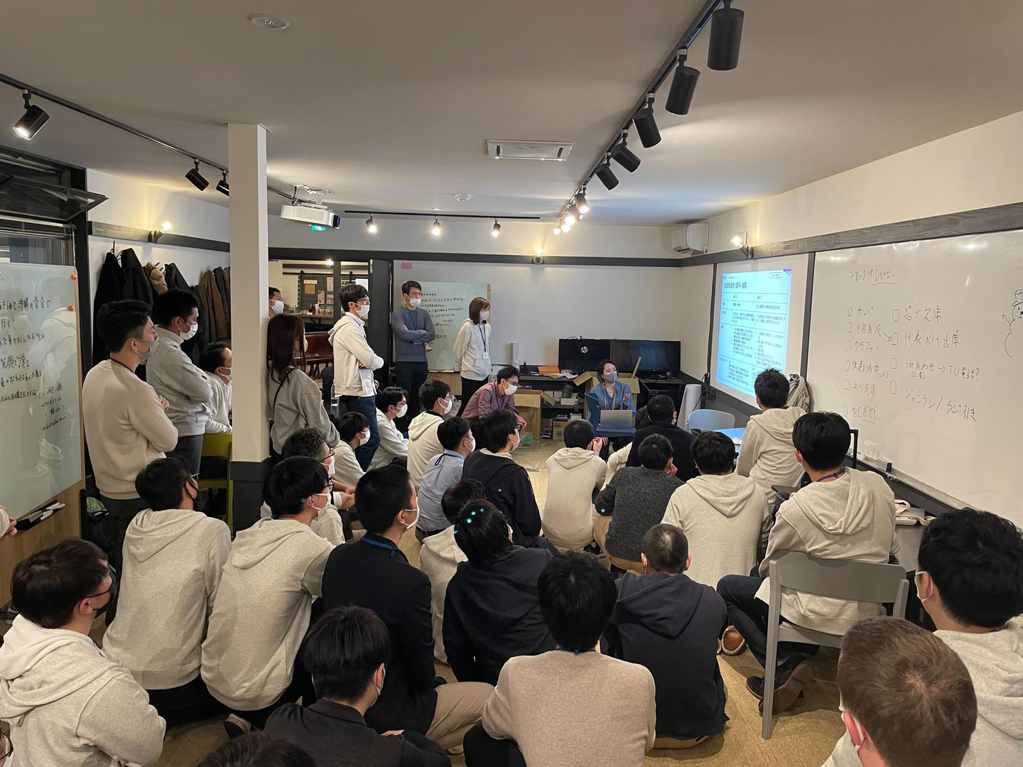 別の部屋では、PMチームやコーポレートチームもそれぞれ現状のチーム課題や解決策についてブレストを行いました。
