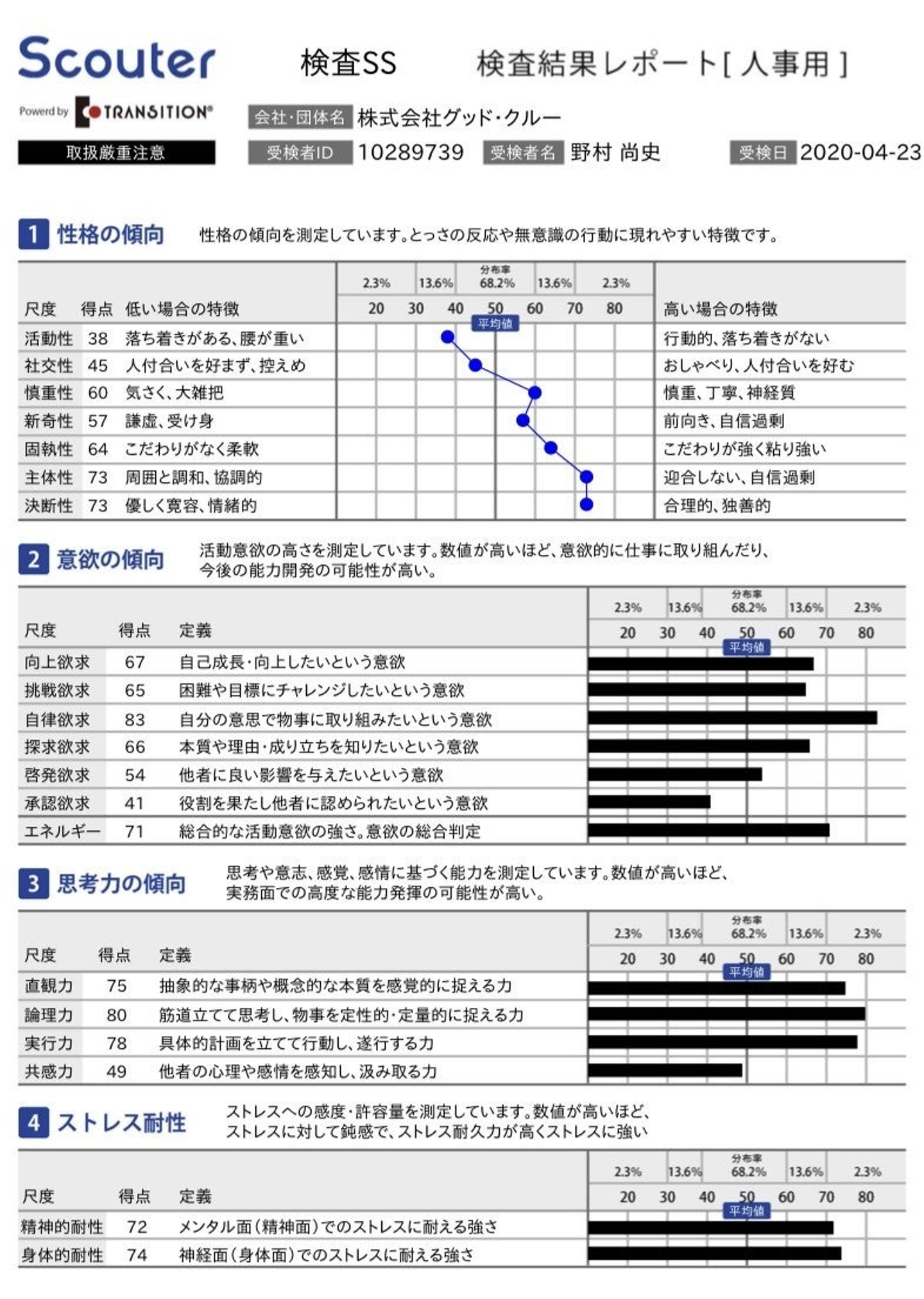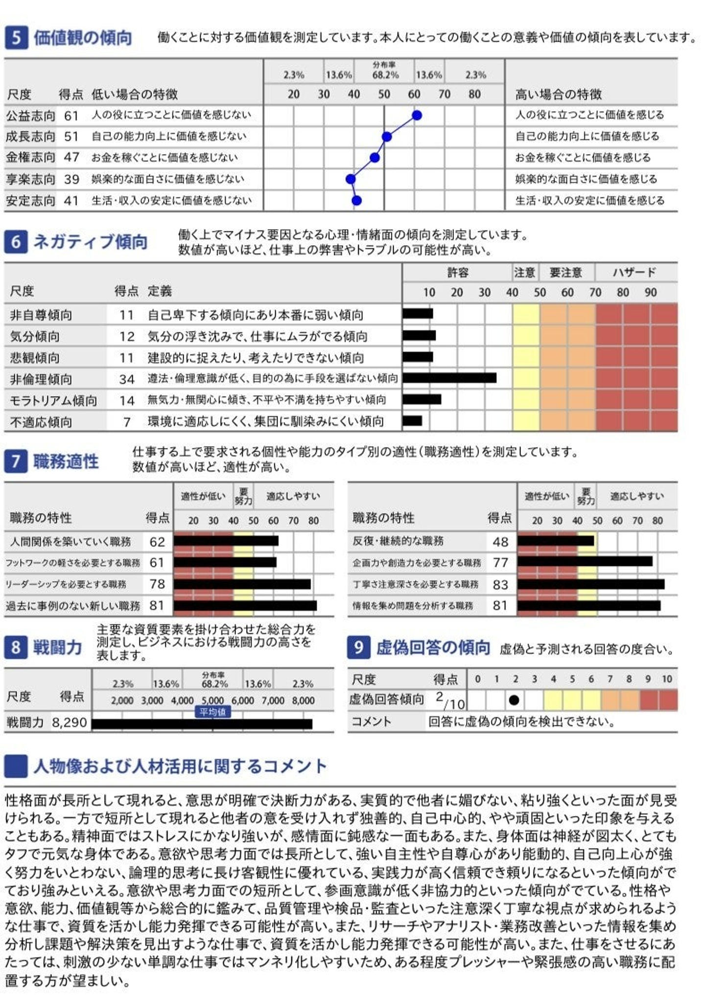 ◆不適正検査スカウター(資質検査)・・・採用界隈で使ってる会社も多いので、僕を一般化するにはわかりやすいかなと思って載せます。