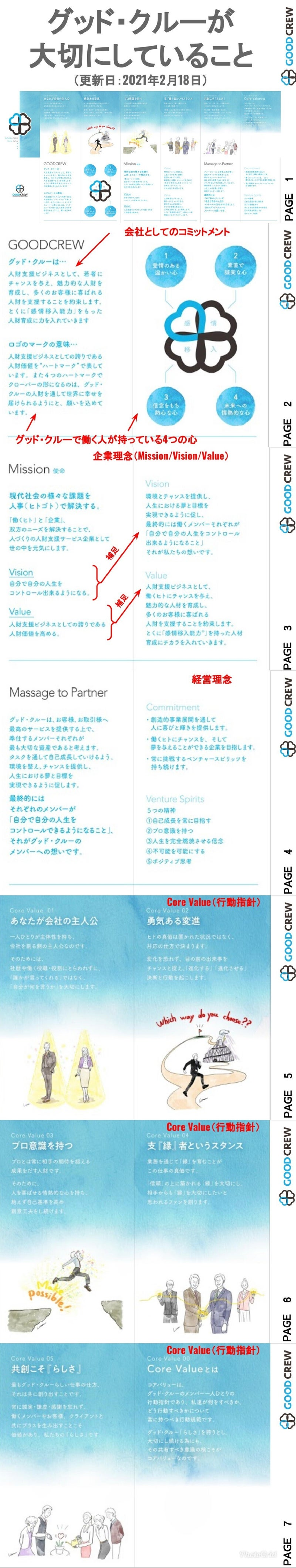 僕の場合はとてもシンプルで、「会社が掲げているメッセージ(ミッション・ビジョン・バリュー)が、僕の掲げているメッセージとリンクするから」です。「この会社で働いていることが、僕の人生にとって有益である」と判断しているからこそ、毎日を歩めています。グッド・クルーにはコアバリューカードというものがあり、以下のその全てを添付します。