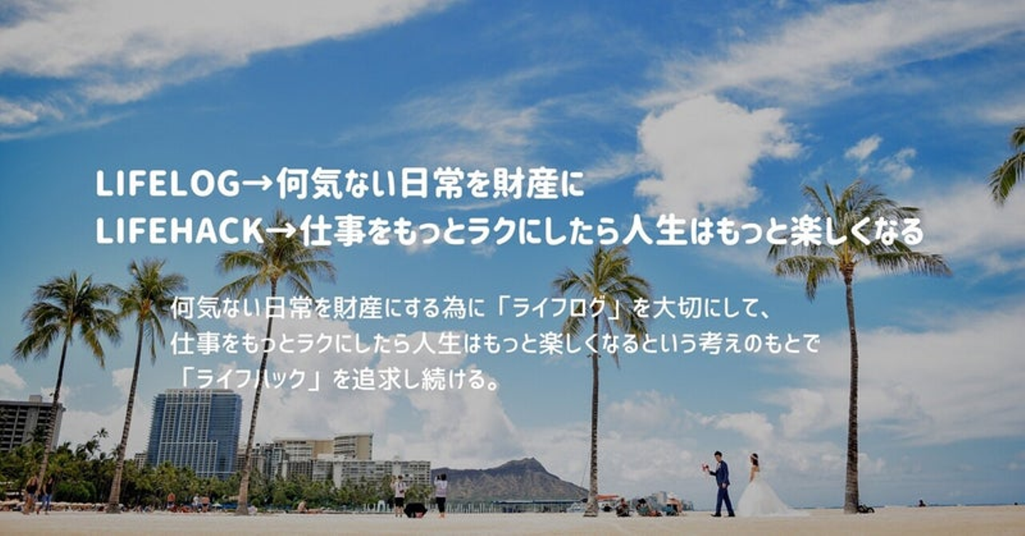 何気ない日常を財産にする為に「ライフログ」を大切にして、仕事をもっとラクにしたら人生はもっと楽しくなるという考えのもとで「ライフハック」を追求し続ける。