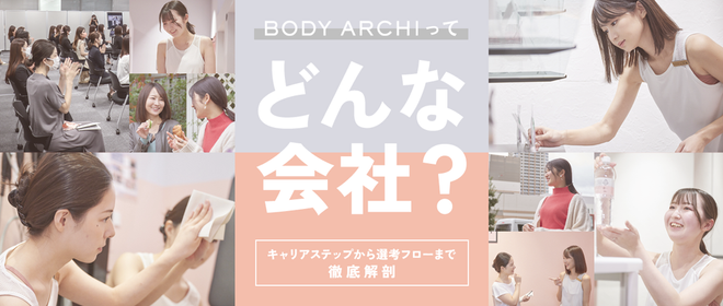 BODY ARCHIとは、Body(=体)と、Architect(=設計士)を組み合わせた造語。 ”自分の自信は、自分でつくる”というコンセプトのもと、 パーソナライズビューティーという新しい美容市場を開拓しました。 自分らしい美しさを手にする女性のためのセルフエステ「BODY ARCHI」を展開し、3年半で40店舗まで急成長中。 世界中の女性を幸せにするために、2025年に上場、その後は世界進出を目指して挑戦し続けています。
