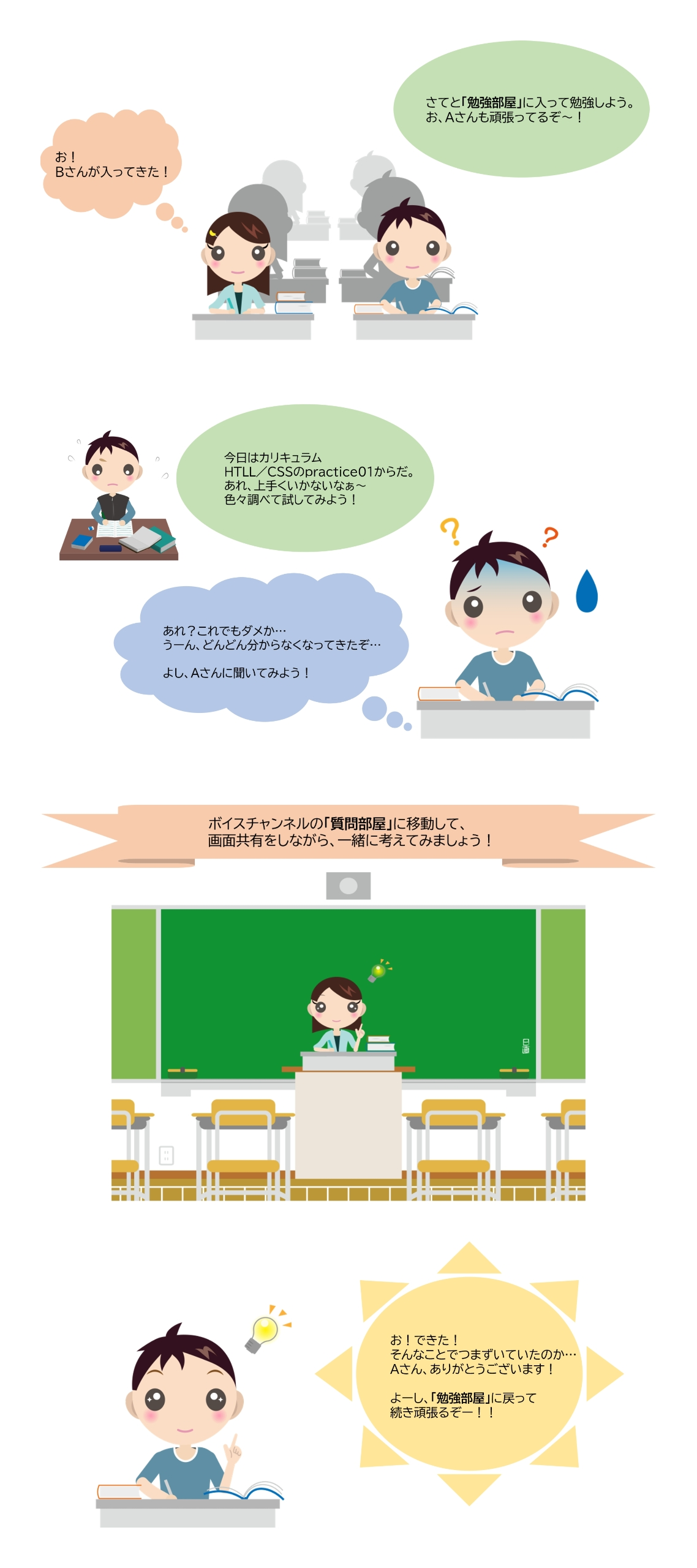 ◎「ボイスチャンネル」で画面共有をしながら教えてもらえるので、分かりやすい。